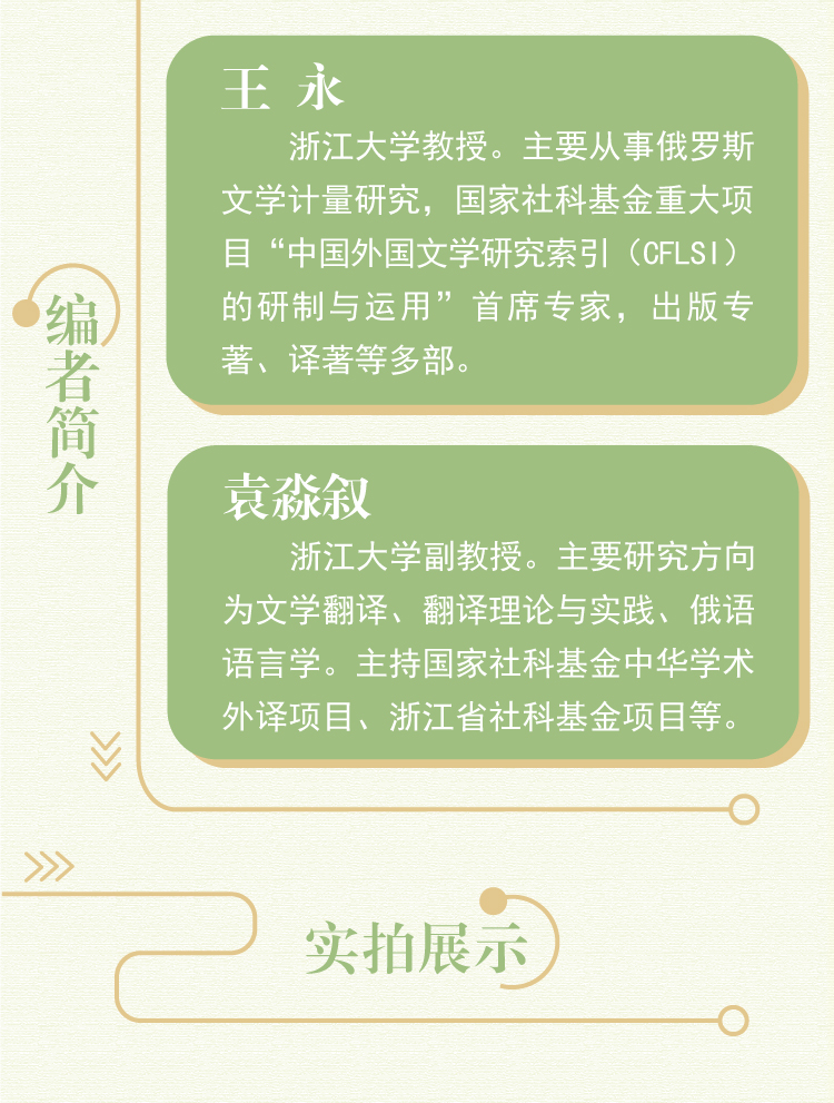 王永,浙江大学教授。主要从事俄罗斯文学计量研究,国家社科基金重大项目“中国外国文学研究索引(CFLSI)的研制与运用”首席专家,出版专著、译著等多部。
