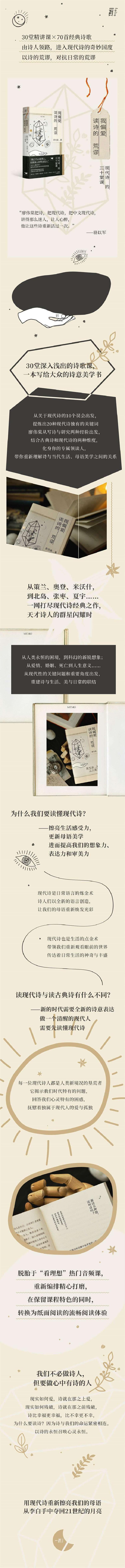 从关于现代诗的10个误会出发,提炼出20种现代诗独有的关键词,由浅入深,娓娓道来,具针对性、全面性、优美性地回答你对诗歌的所有疑问与困惑。