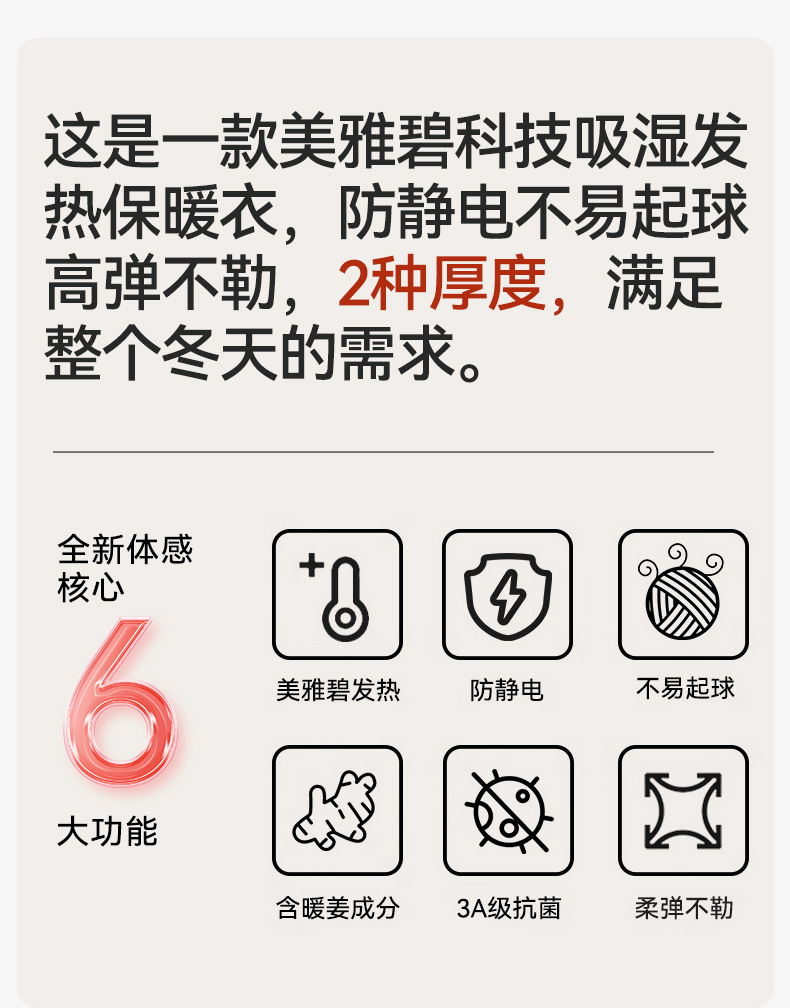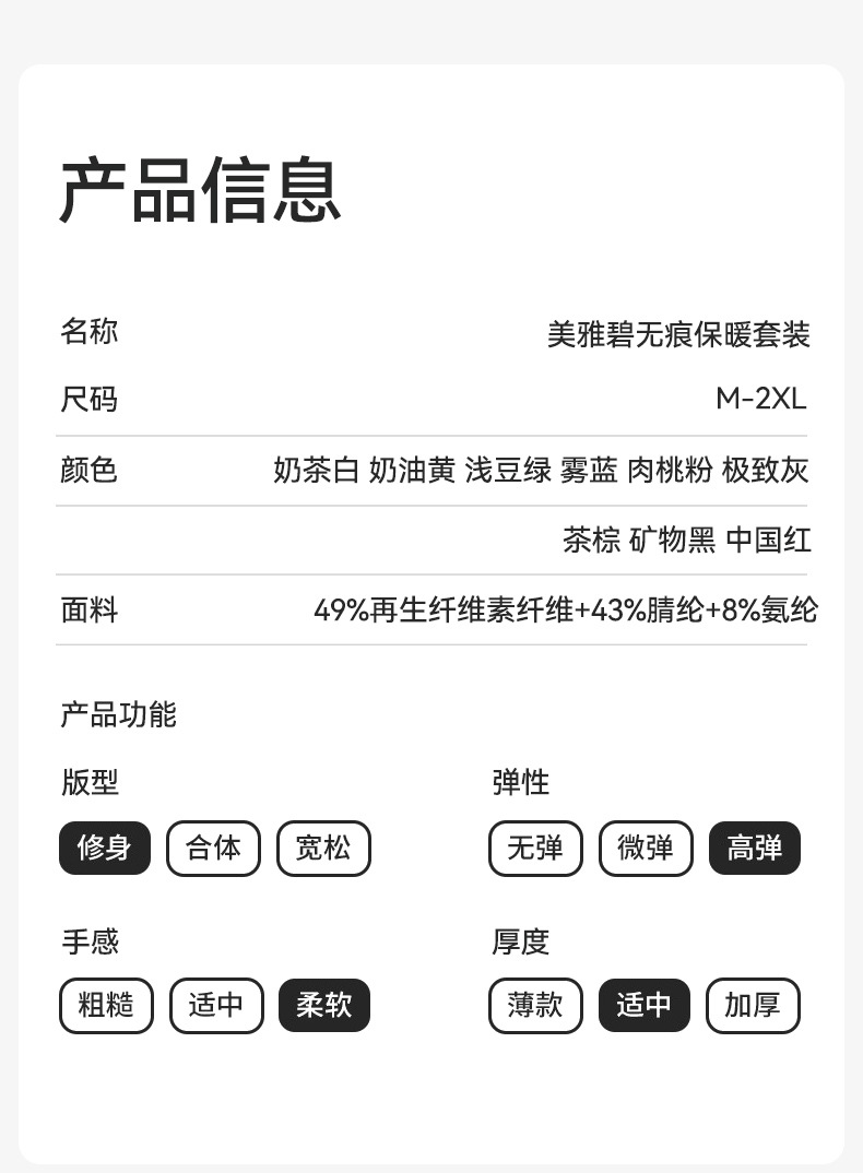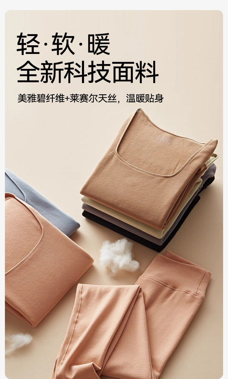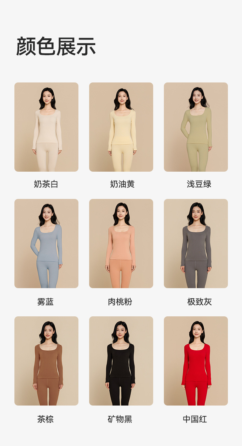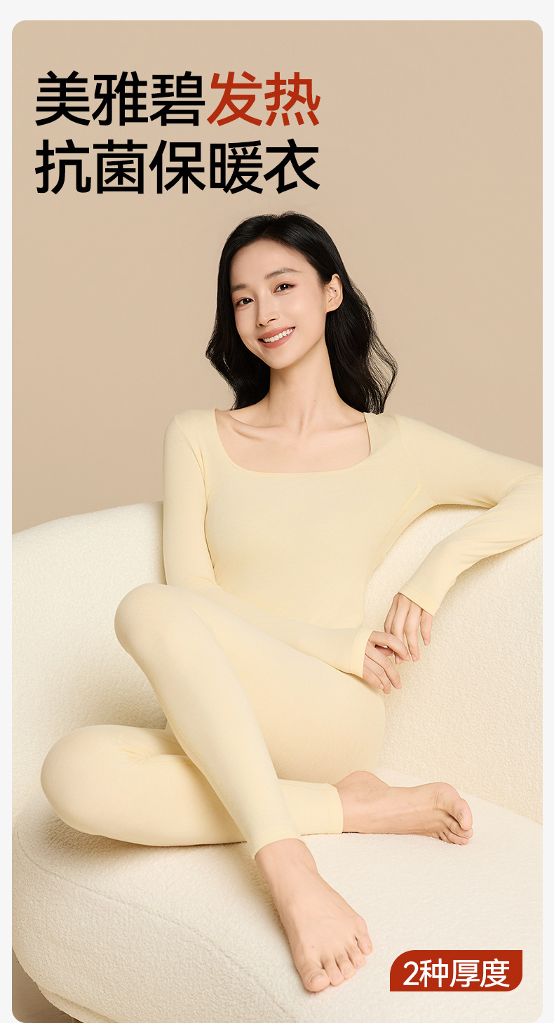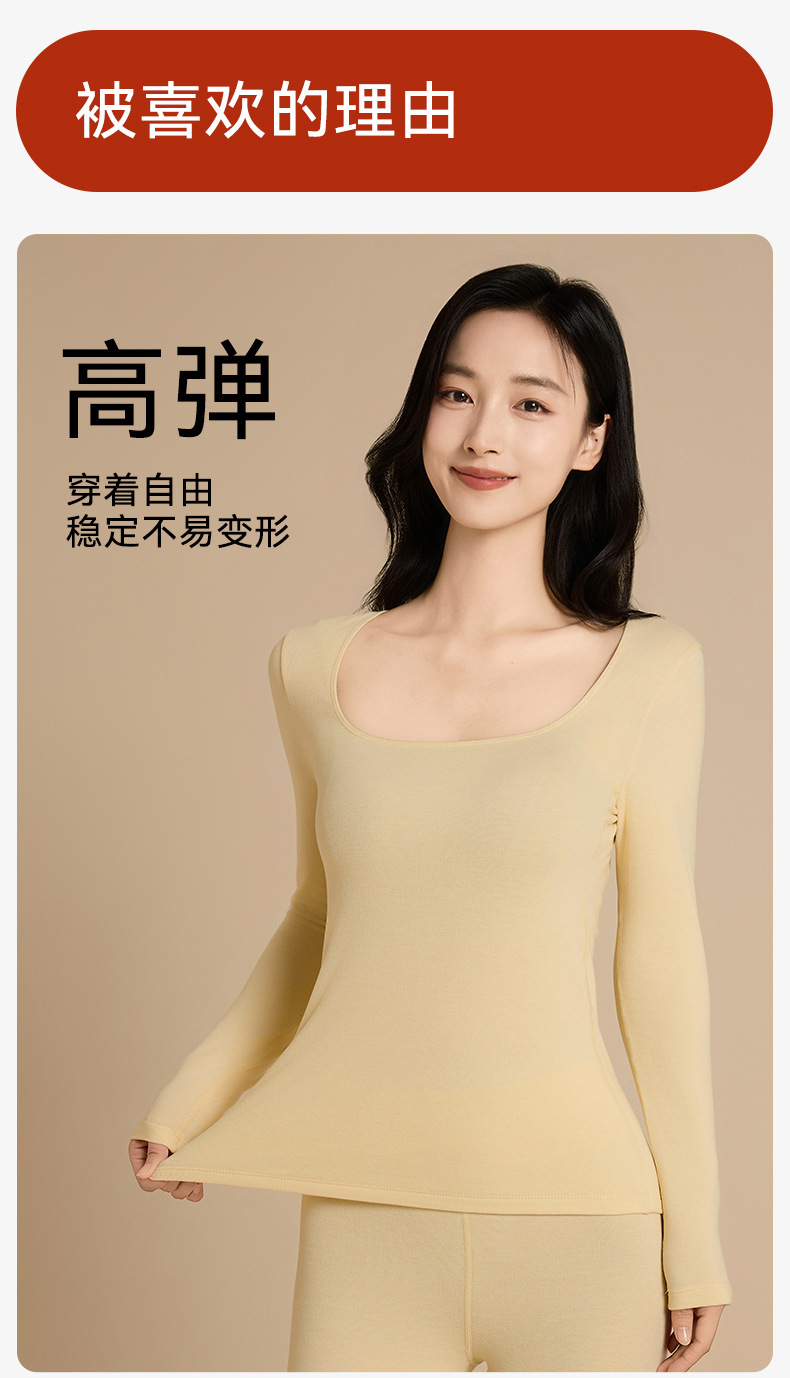【舒适保暖❗️高弹修身】秋冬保暖套装女抗菌美雅碧内衣方领打底衫收腹裤打底上衣
