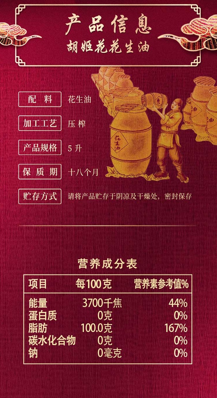 【本来生活&厂家直发】胡姬花金衣玉食古法花生油5L
