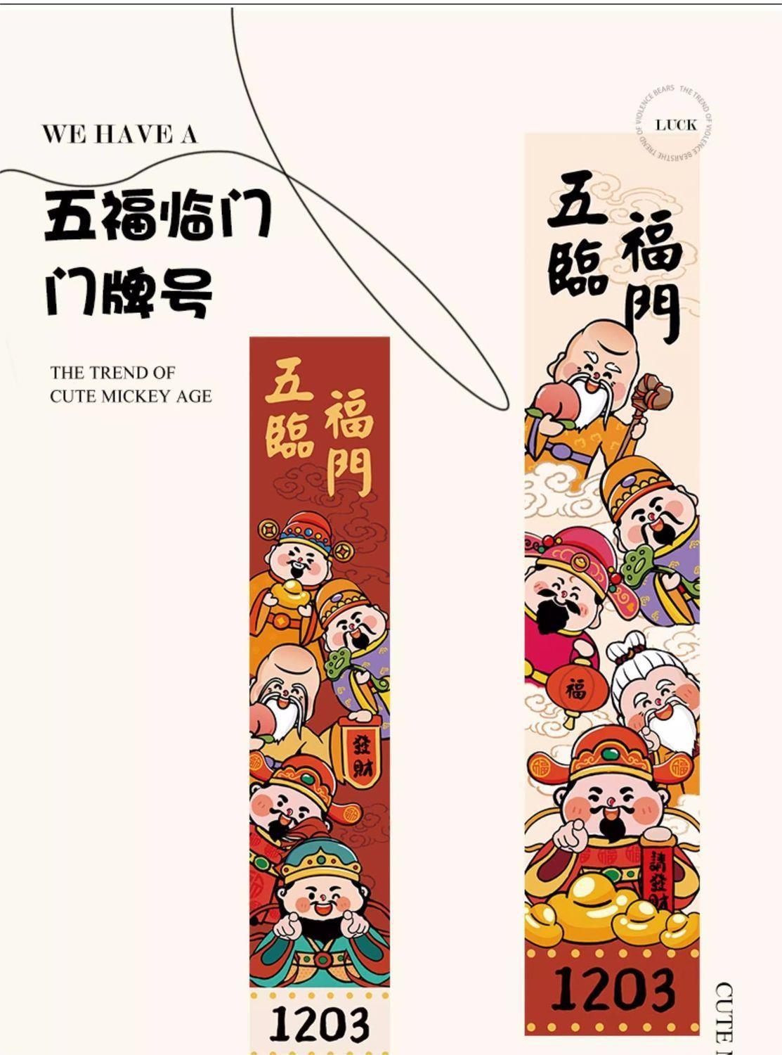 【新年卡通挂件福字装饰画】线条小狗入户门牌号定.制家用号码牌