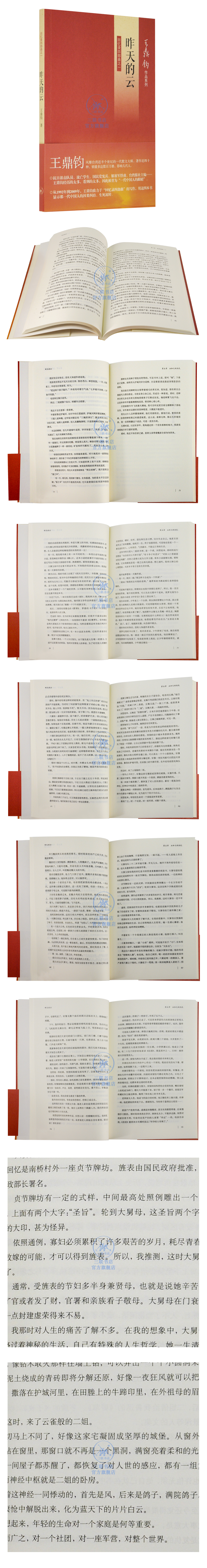 《昨天的云(回忆录四部曲之一)》是王鼎钧“回忆录四部曲”的第一 部,写故乡、家庭和抗战初期的遭遇。《昨天的云(回忆录四部曲之一)》 作者对家乡的风土人情、历史掌故及种地劳作信手拈来,同时将个体的遭 遇置于宏大的社会背景中,以小见大,在朴素无华中显示出一种深度和力量。