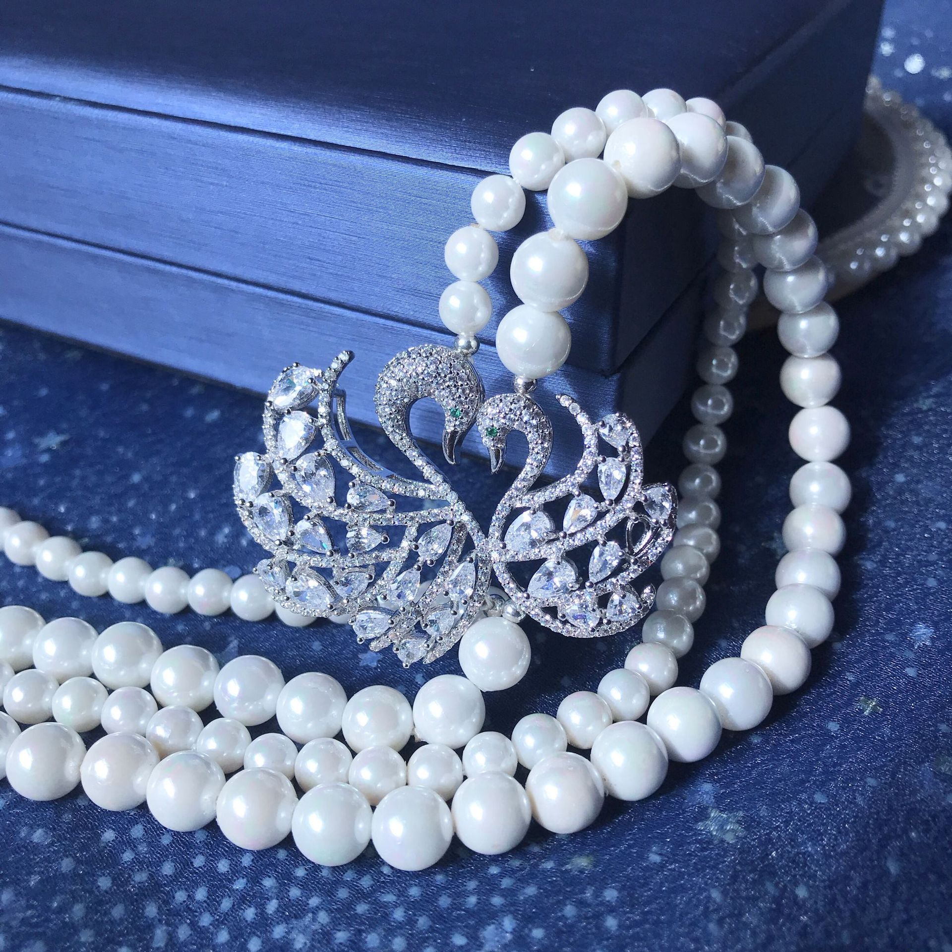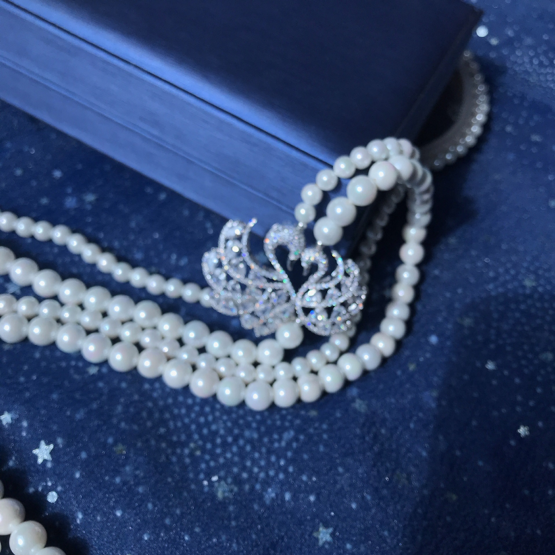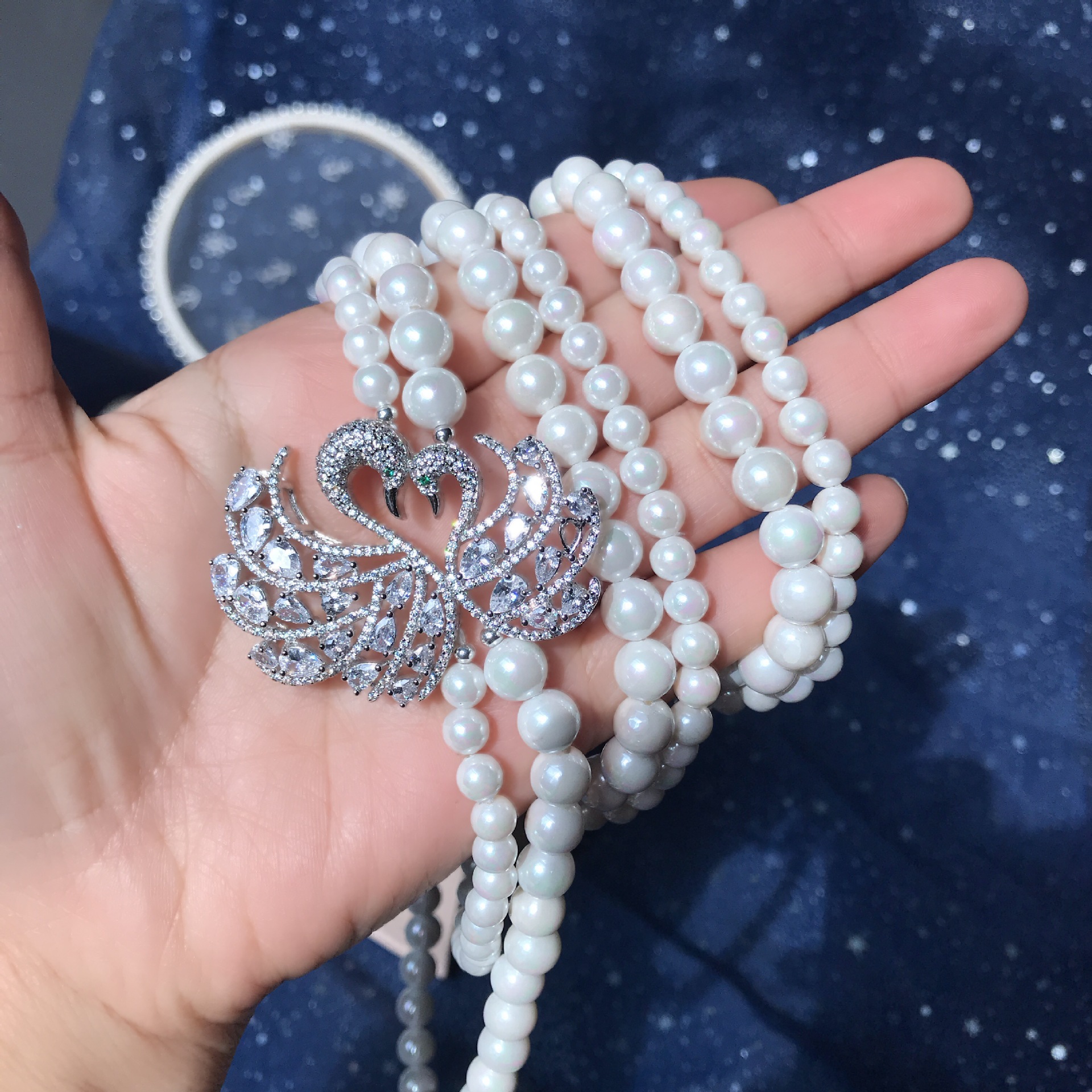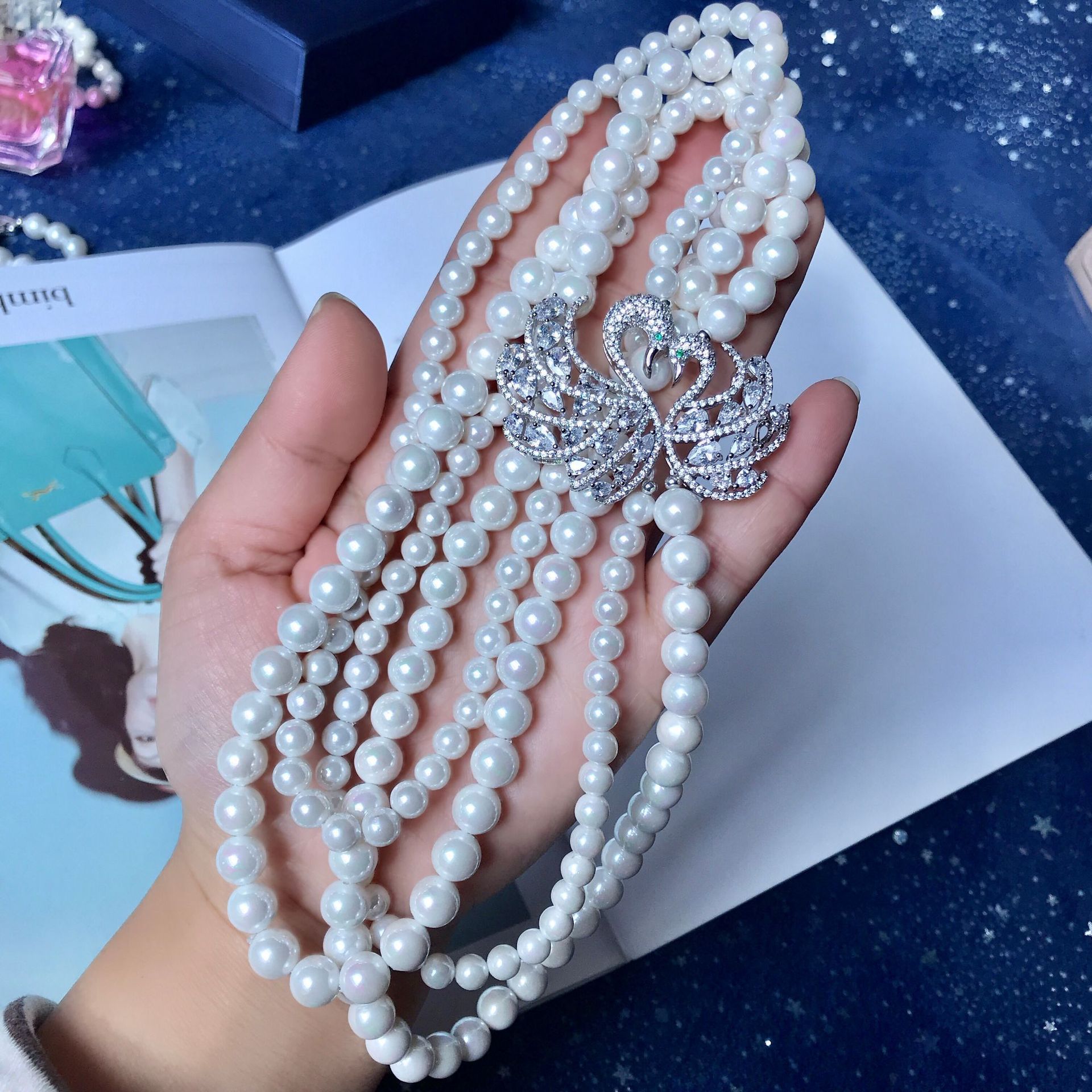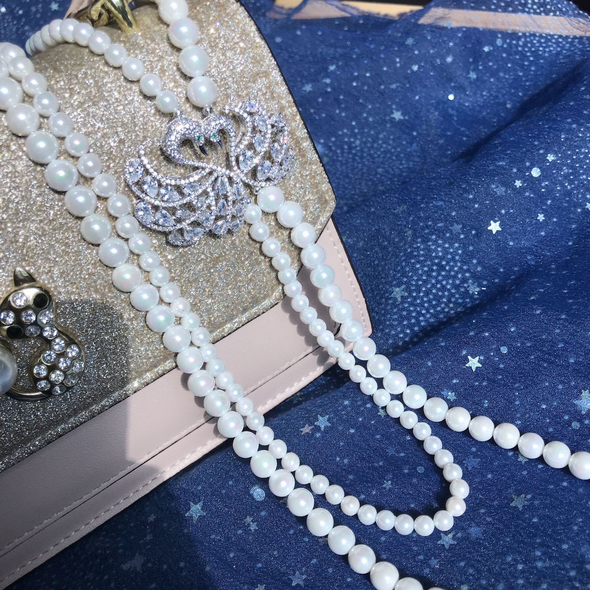 上海旗袍厂NM-MYL-2020122天然贝壳珍珠贝珠气质优雅女双层贝珠项链微镶天鹅毛衣链