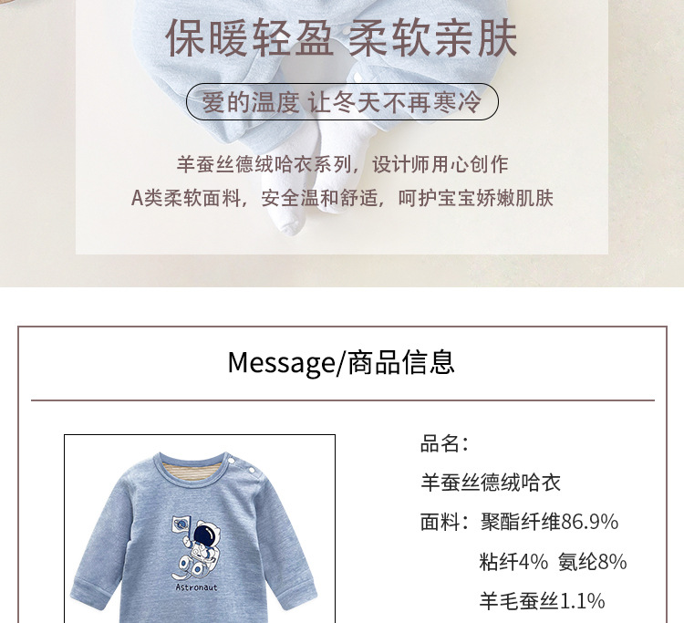 【羊蚕丝德绒哈衣系列,设计师用心创作】宝宝秋季哈衣 德绒婴儿秋冬连体衣 保暖内衣连体衣 儿童加绒打底衣-QQ