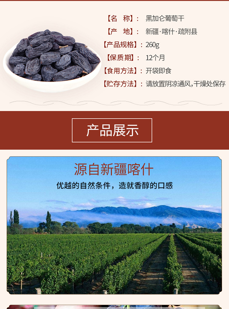 新疆喀什特产 特级黑加仑葡萄干 260g/袋
