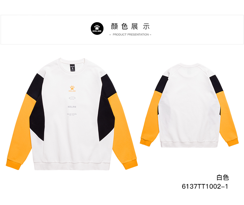 卡尔美春季新款男士圆领拼色卫衣