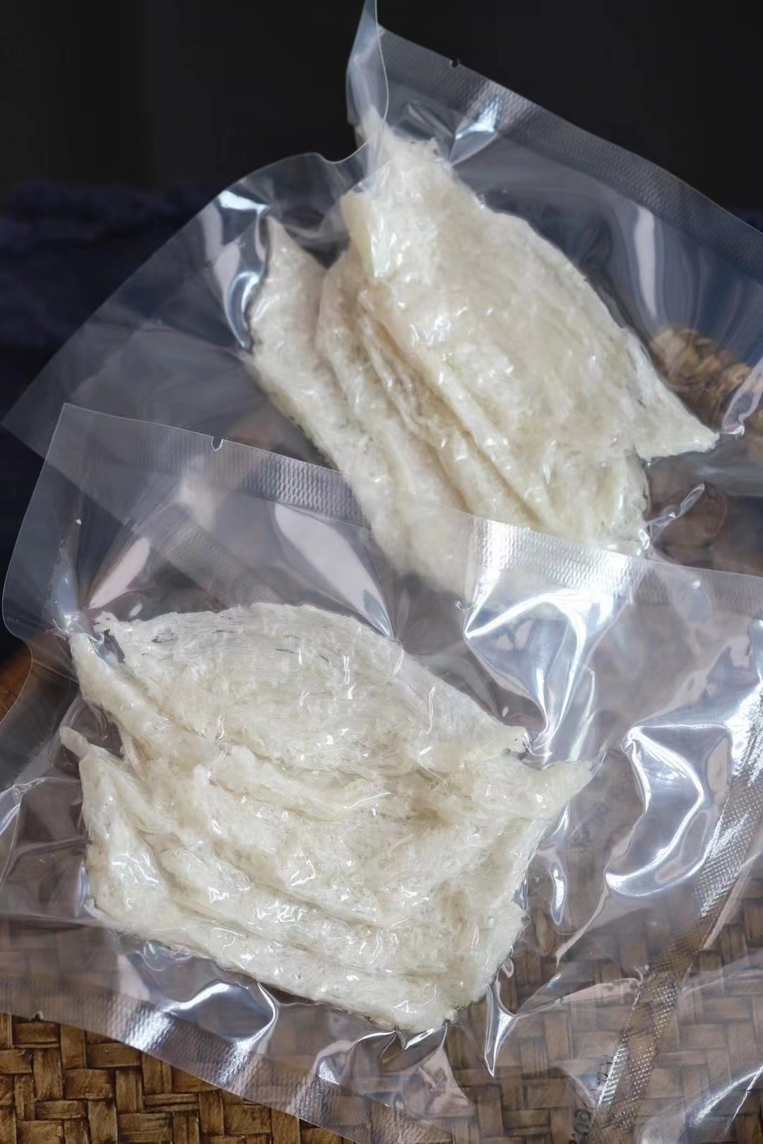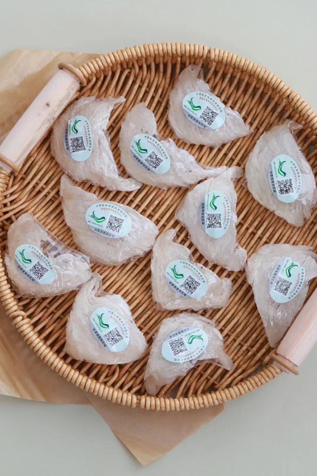 大燕条:没有盏的形状,多为在摘采过程中或运输过程中,被压碎或者无法成盏的燕窝做成。