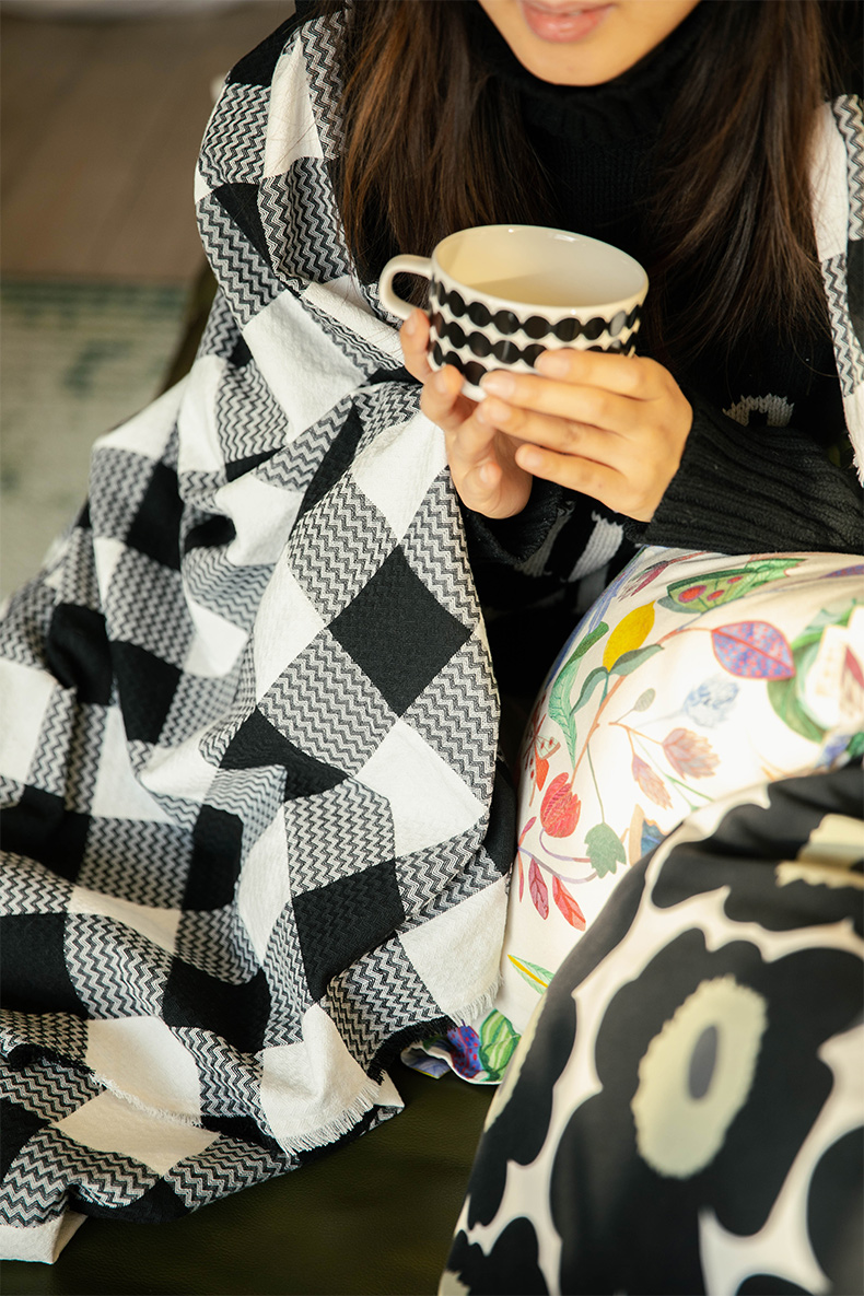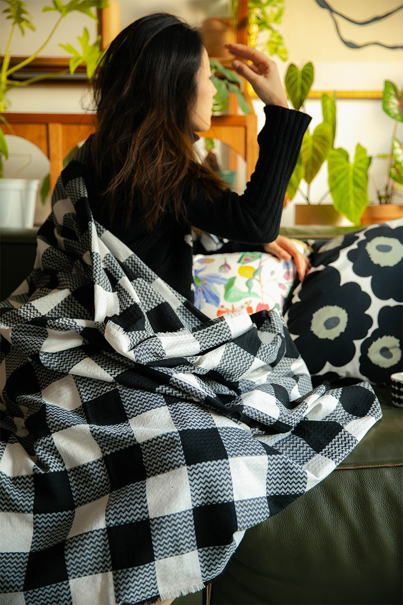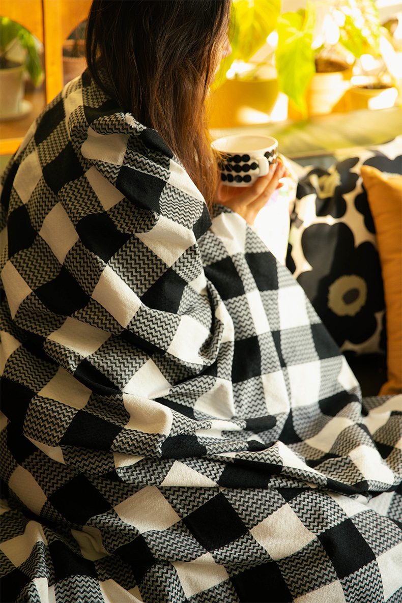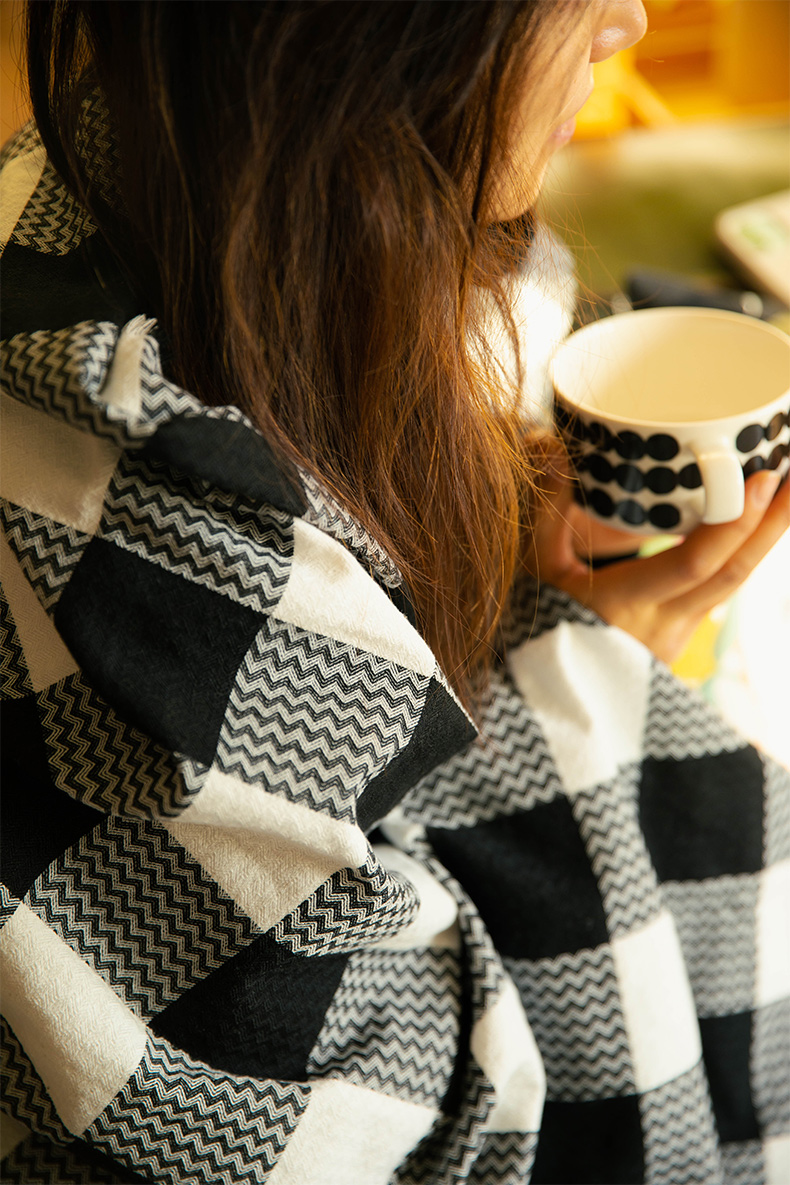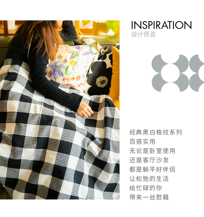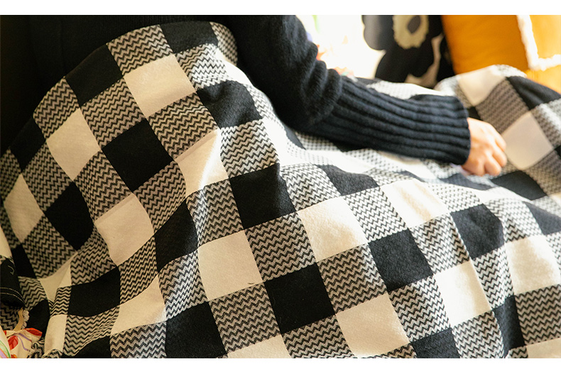 经典黑白格纹盖毯冬季沙发床上用毯子