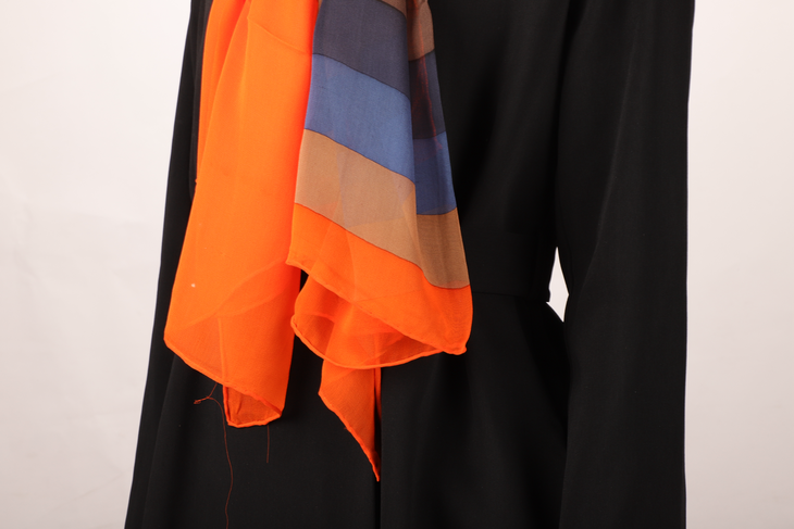 桑蚕丝雪纺层次印花手工卷边长巾