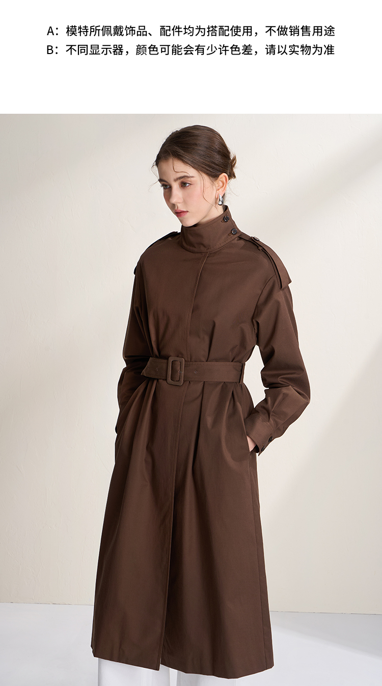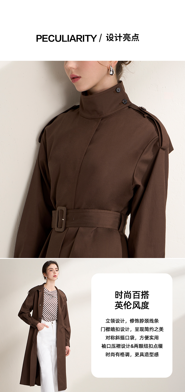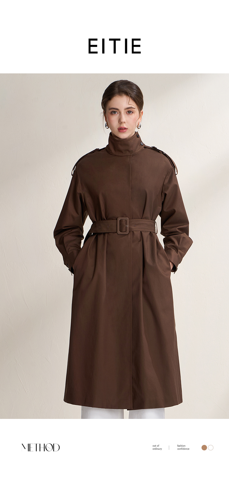 EITIE爱特爱英伦风通勤时尚复古立领本布腰带收腰2026春季新款风衣A2604101