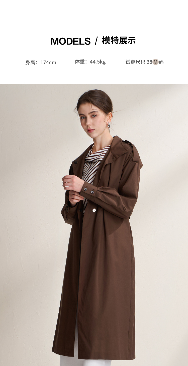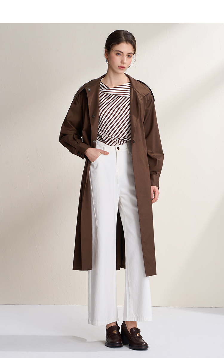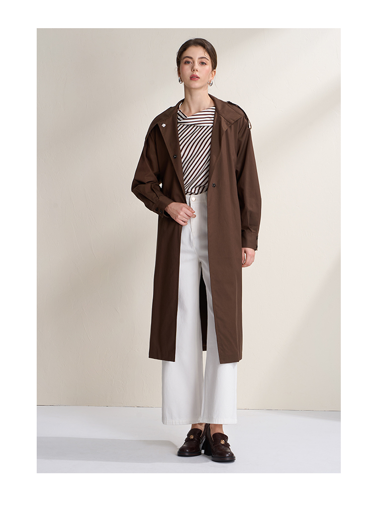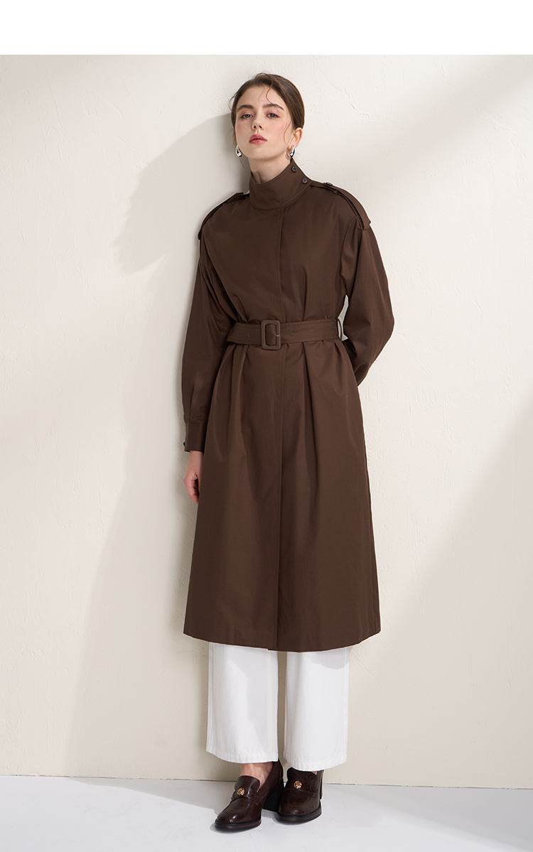 EITIE爱特爱英伦风通勤时尚复古立领本布腰带收腰2026春季新款风衣A2604101