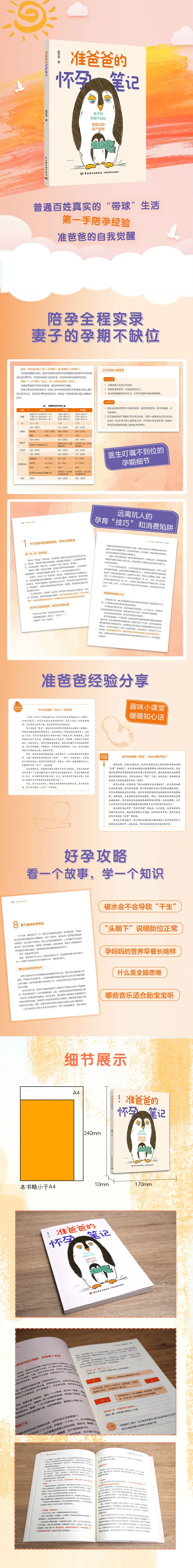 《准爸爸的怀孕笔记》是一本准爸爸的陪孕全流程记录。从发现妻子意外怀孕到新生儿降临,作者从准爸爸的视角纵观整个孕期,分享孕期发生的各类事项,记录和整理了孕期常见的疑惑和解决办法,感受和体验了角色转换中的爱与责任,是难得的一手经验之谈,值得新手爸妈借鉴参考。