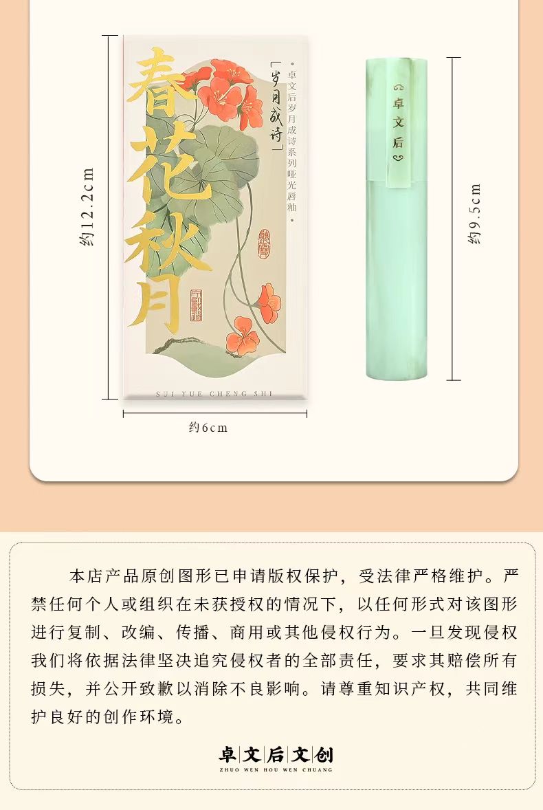 【嫣然生色 红唇一笑 水感柔雾】非遗文化卓文后岁月成诗系列 丝绒哑光唇釉