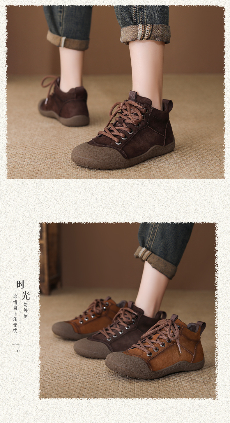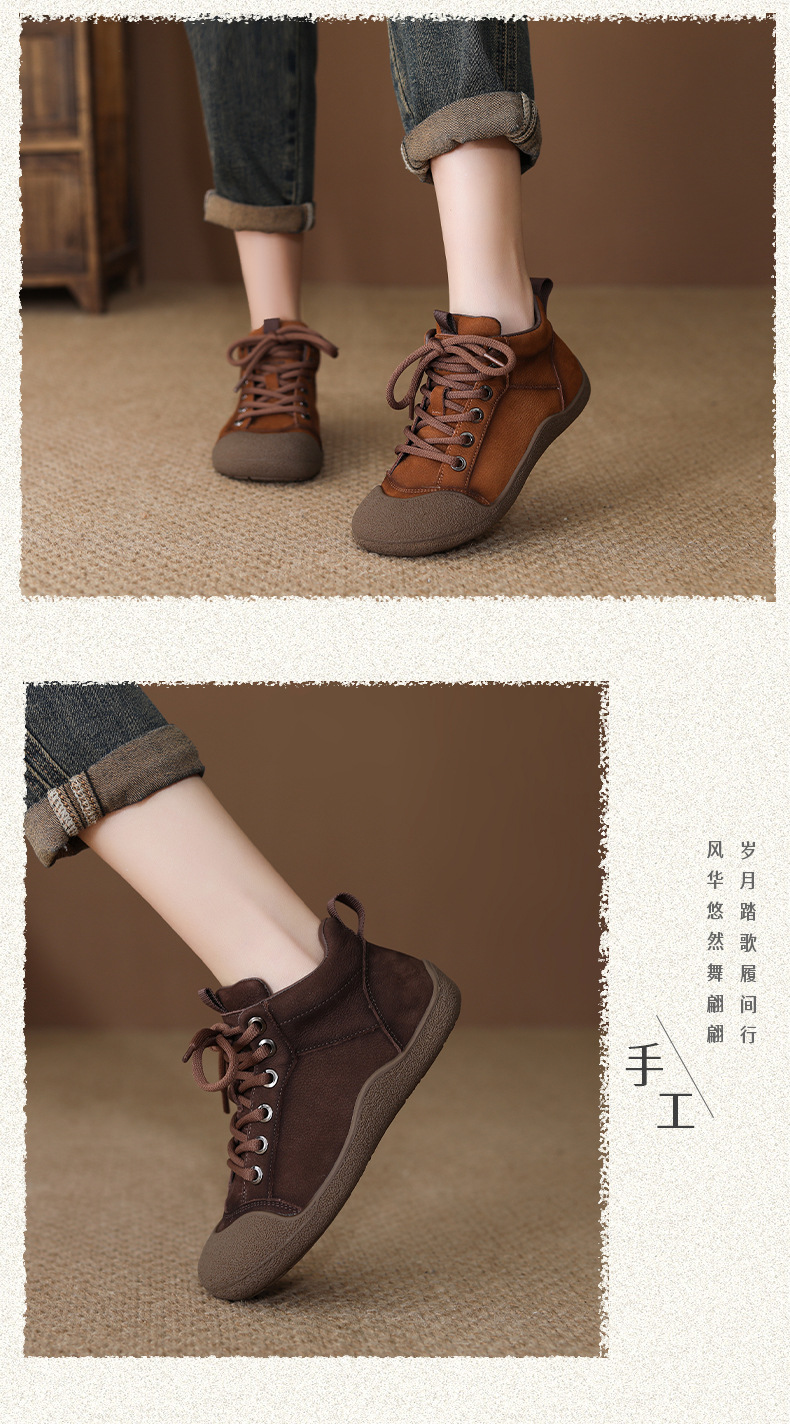 FR 85119真皮单靴复古系带平底高帮单鞋