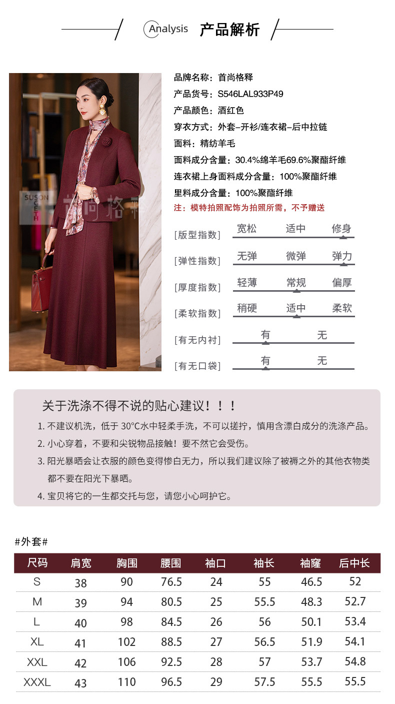 YBY 933P49时尚喜婆婆婚宴套装裙洋气气质毛呢两件套裙