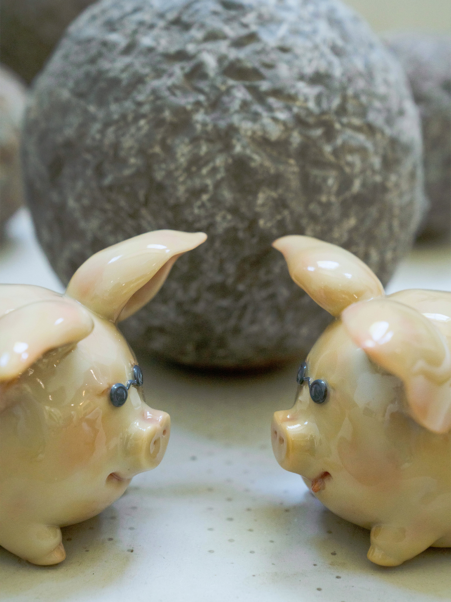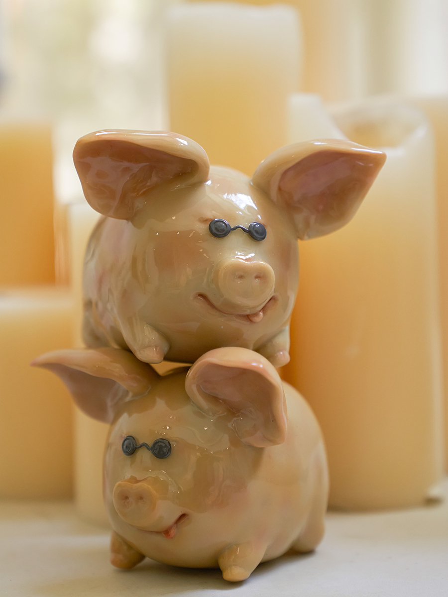 稀奇艺术《像个孩子似得&稀奇猪》客厅桌面小瓢虫玻璃钢手绘雕塑摆件