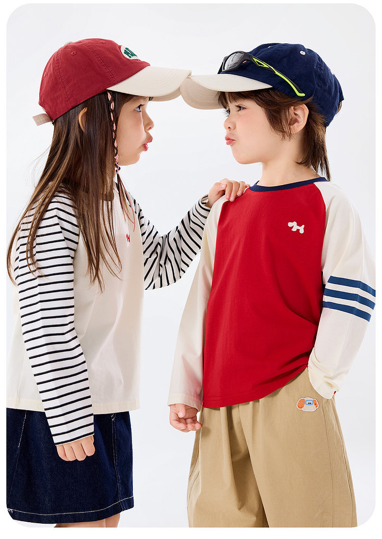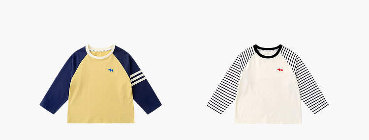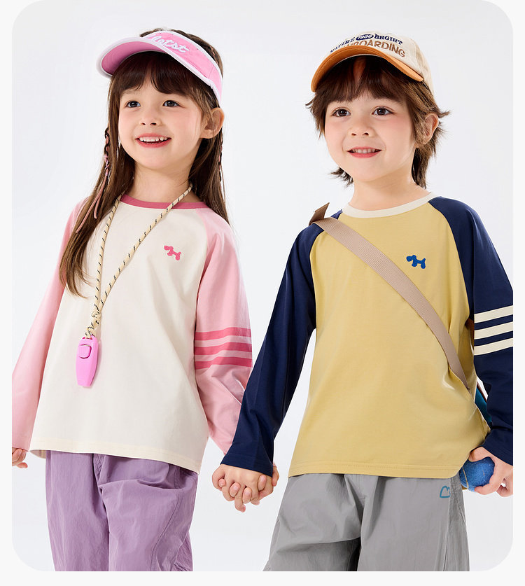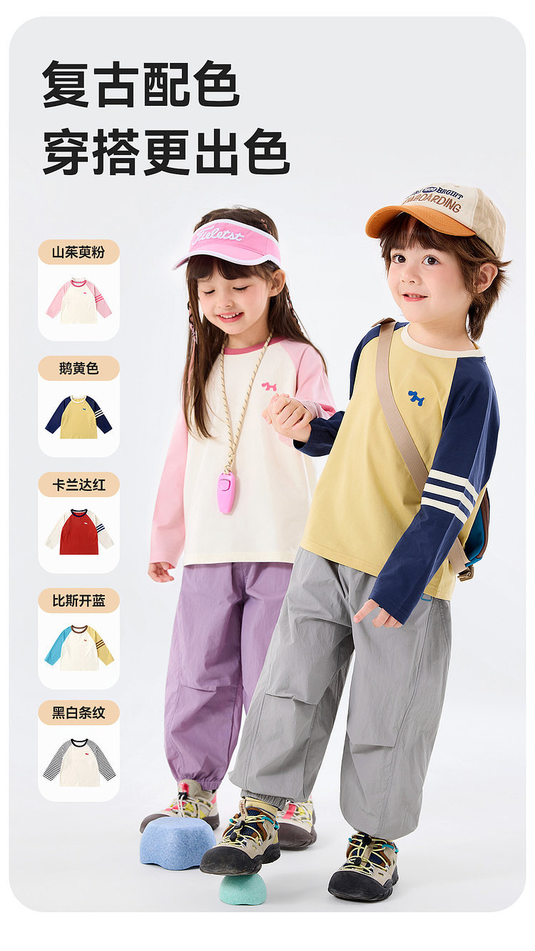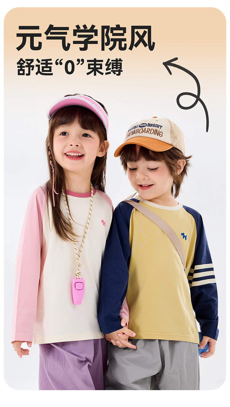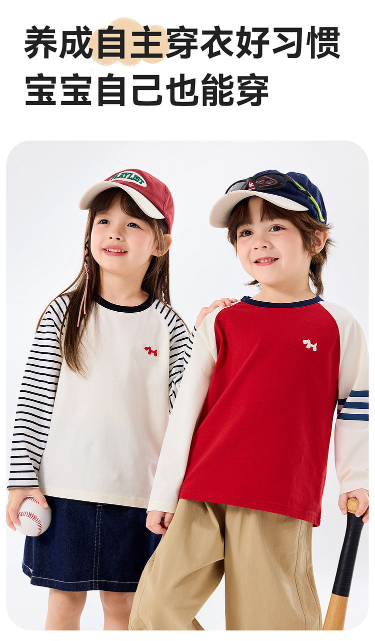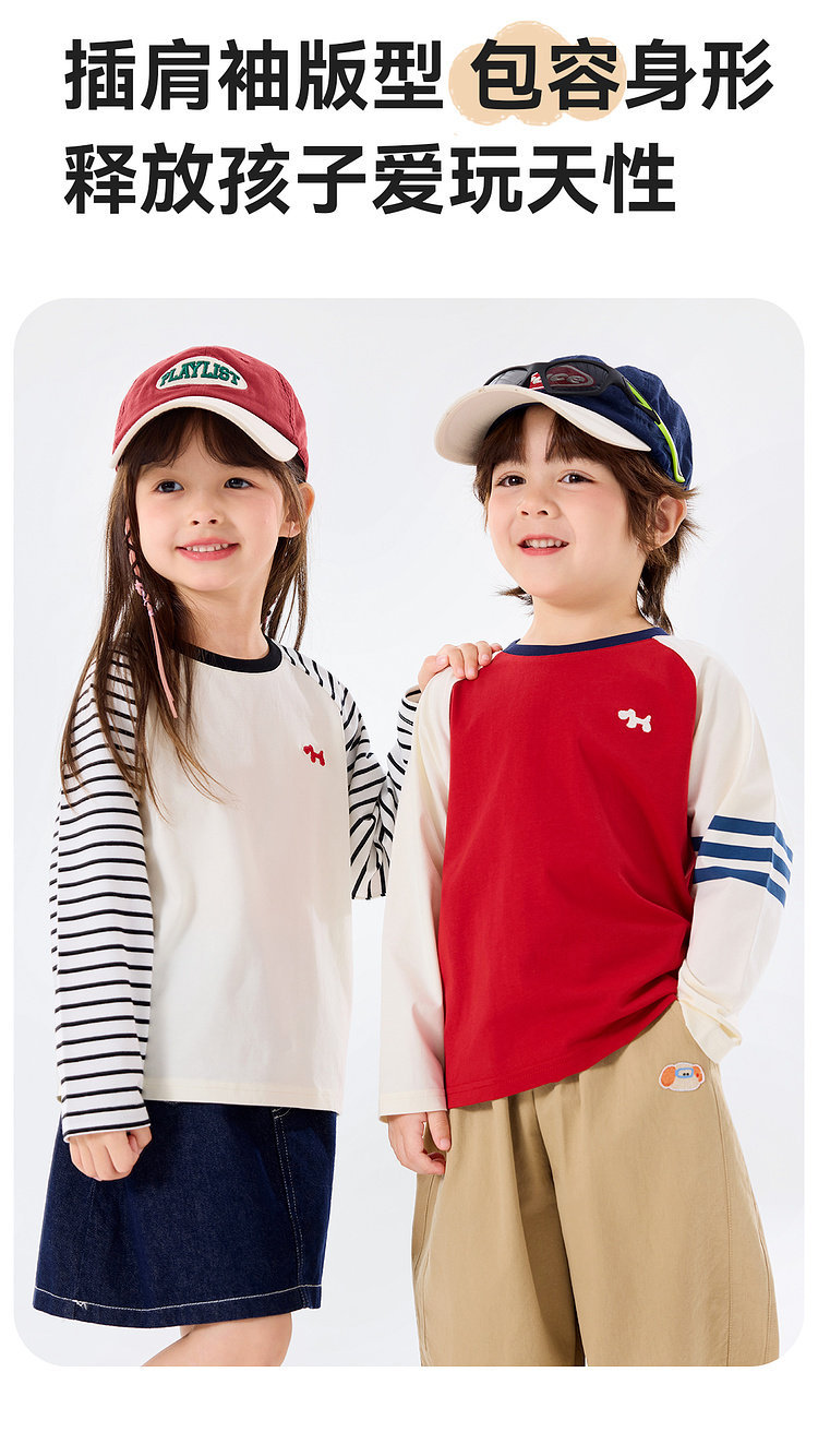 【柔软轻弹不易变形❗️时尚学院风】嘟嘟家童装儿童纯棉T恤春季新款男童插肩袖上衣春装女童打底衫潮。jd