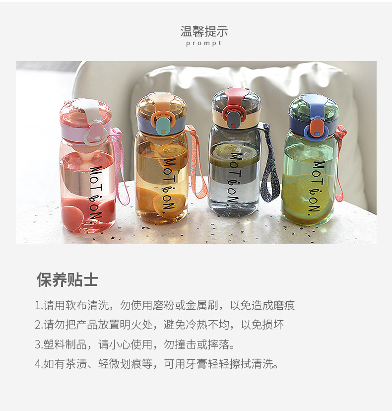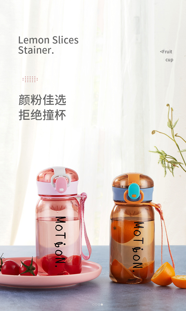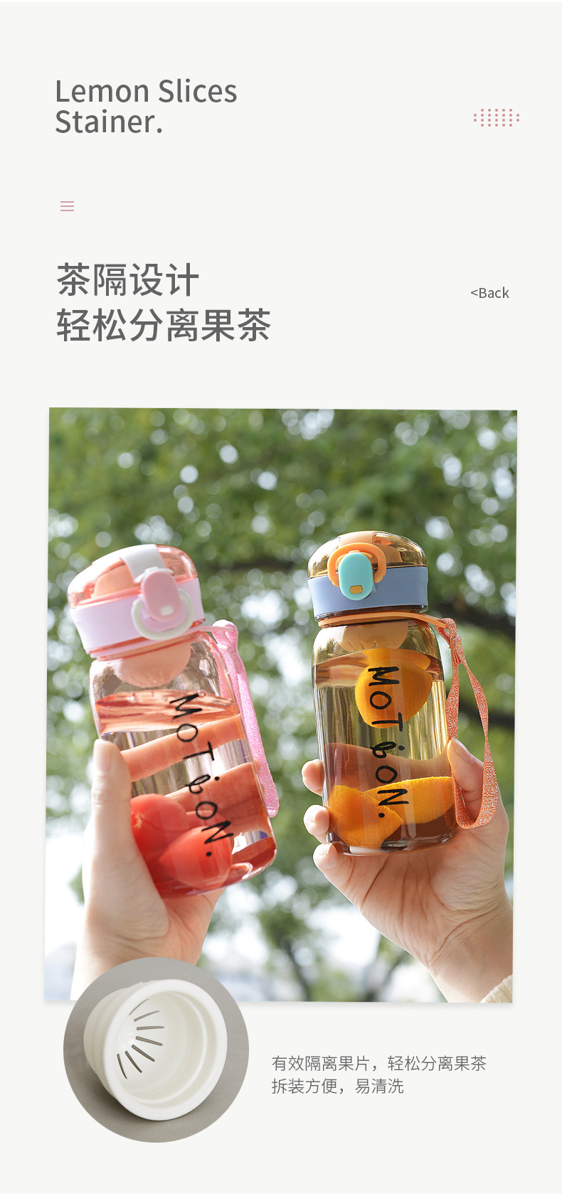 【茶隔设计❗轻松分离果茶】夏季户外运动吸管水杯便携提绳塑料锁扣杯学生成人弹跳盖。rh