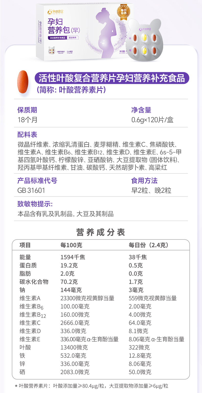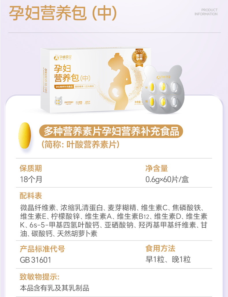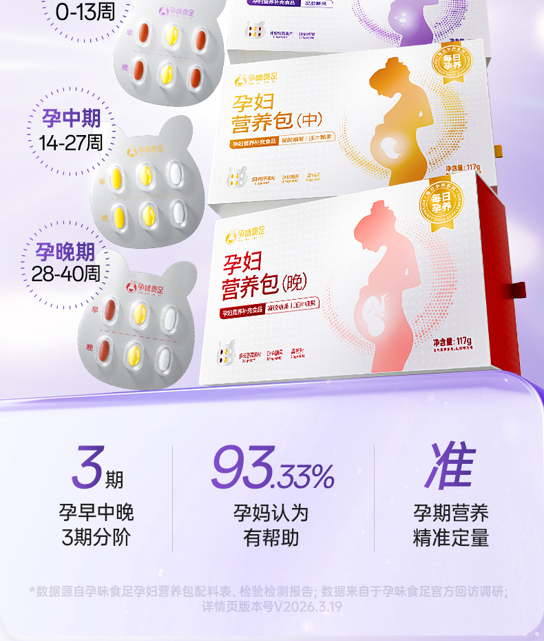 【品牌自营】孕味食足孕妇每日营养包早中晚期分阶27种营养元素