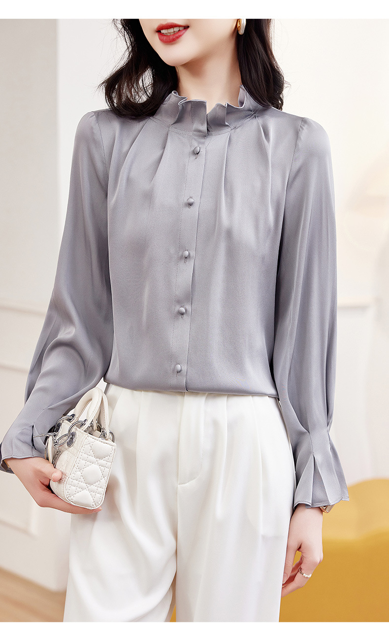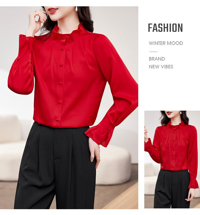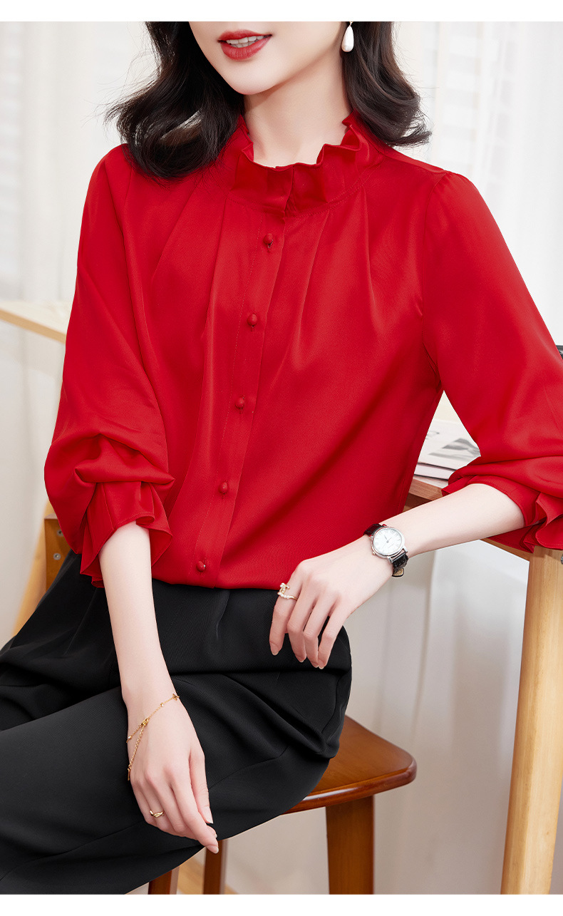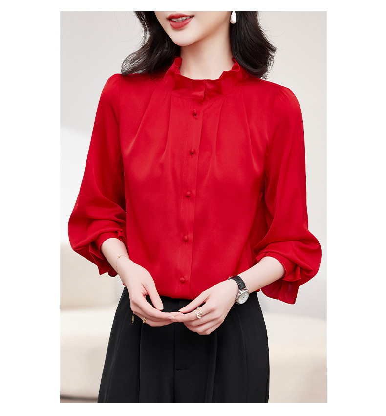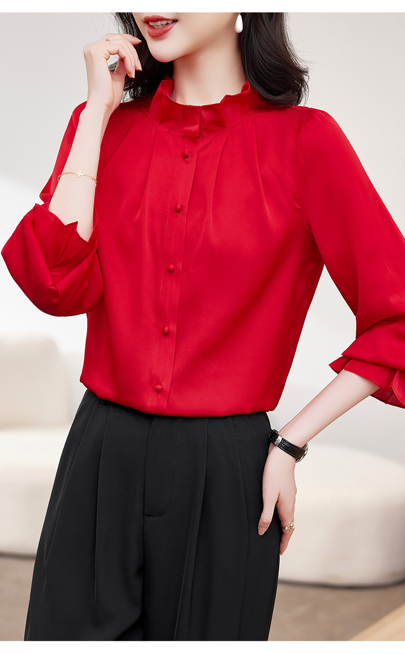 KQ-2026新款春装长袖灯笼袖洋气质红色衬衫女真丝上衣桑蚕丝时尚小衫