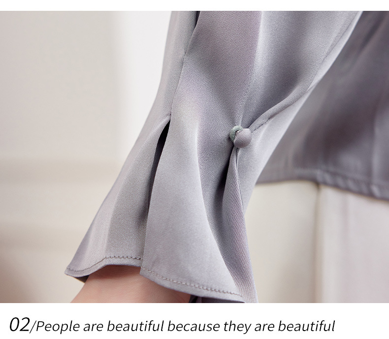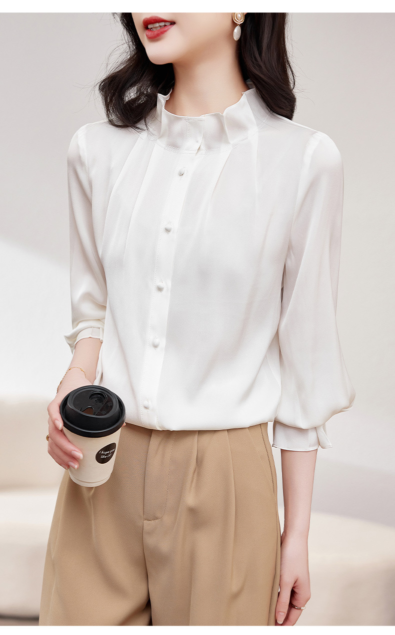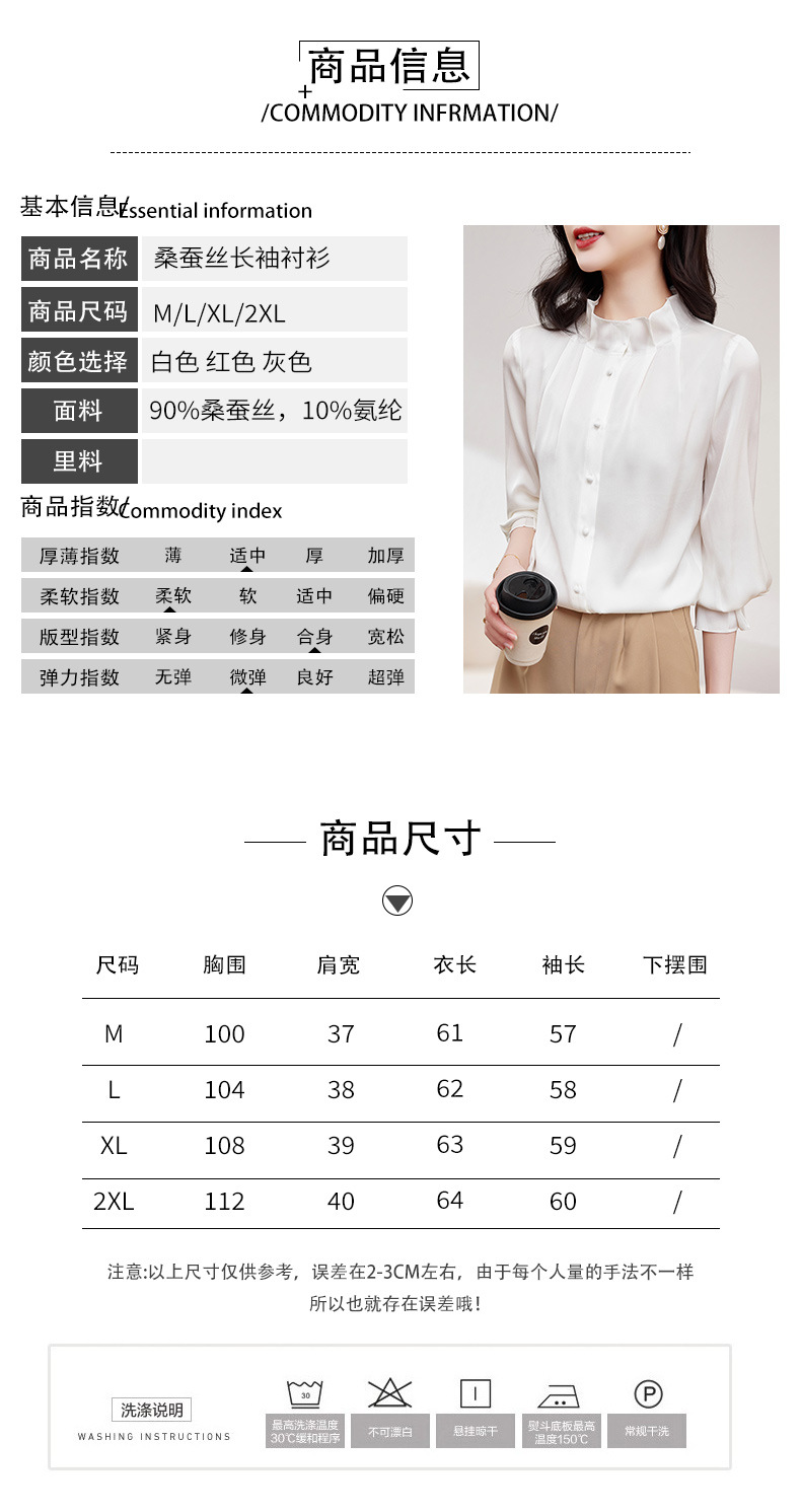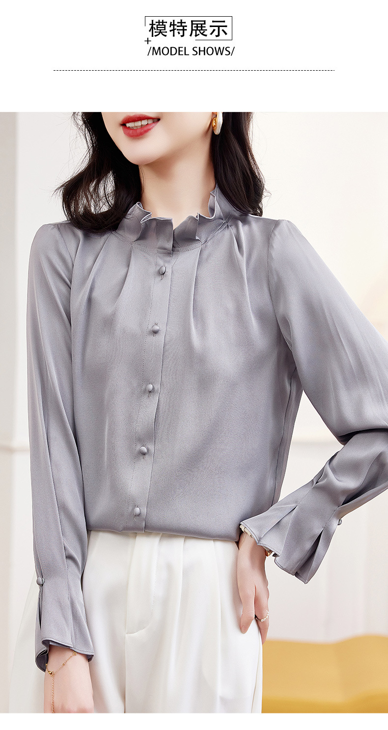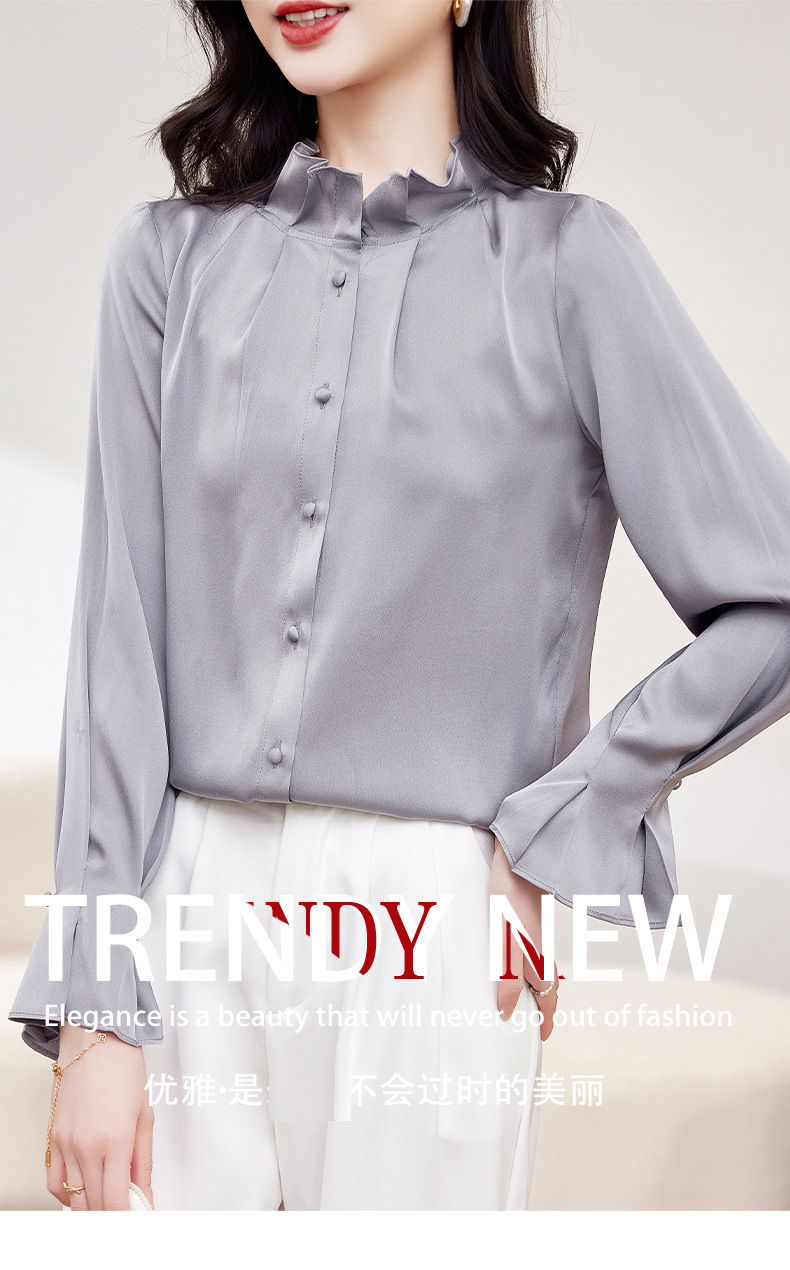 KQ-2026新款春装长袖灯笼袖洋气质红色衬衫女真丝上衣桑蚕丝时尚小衫