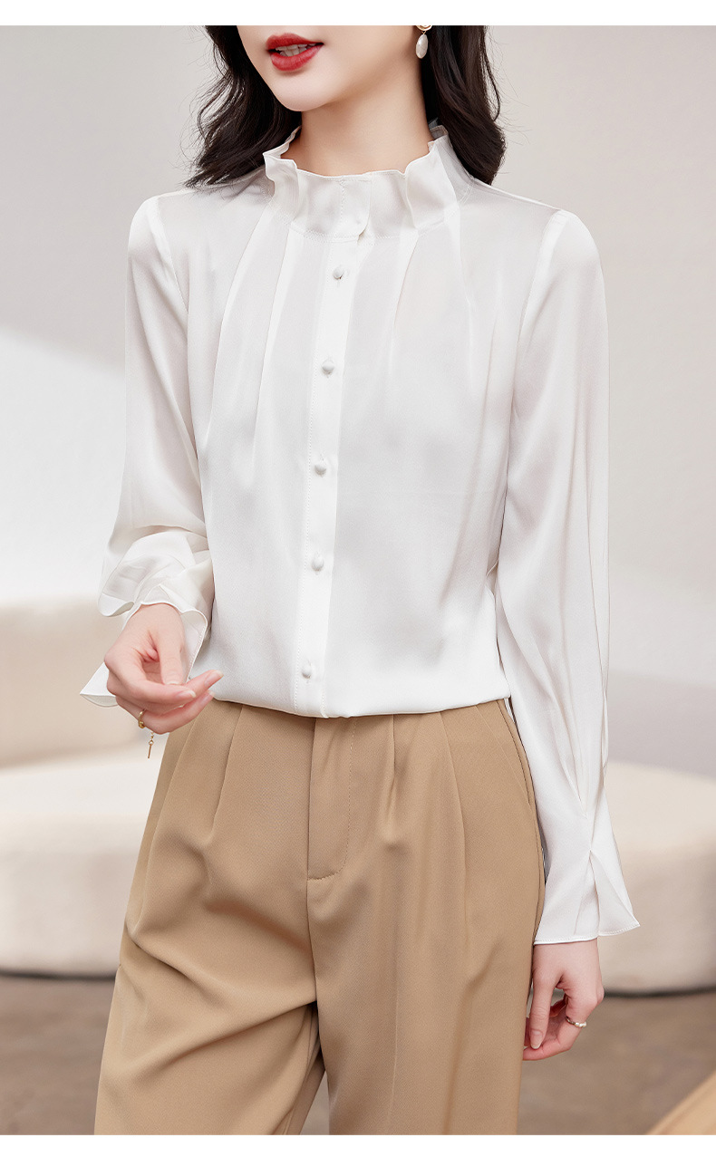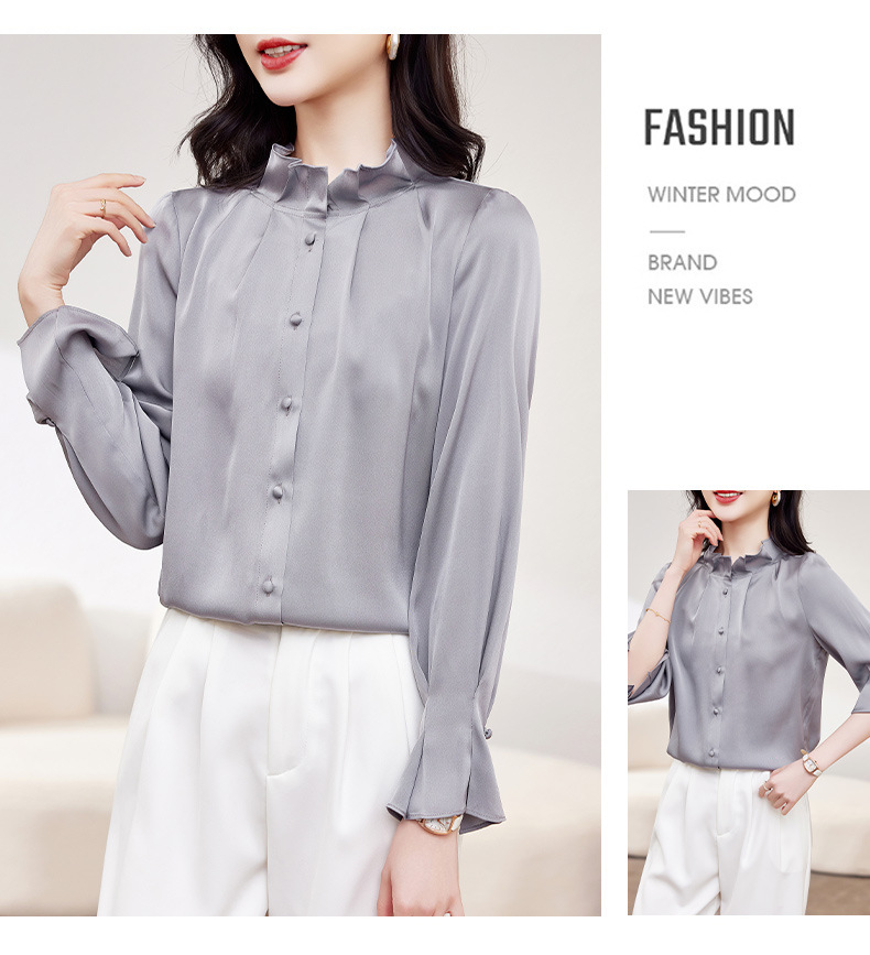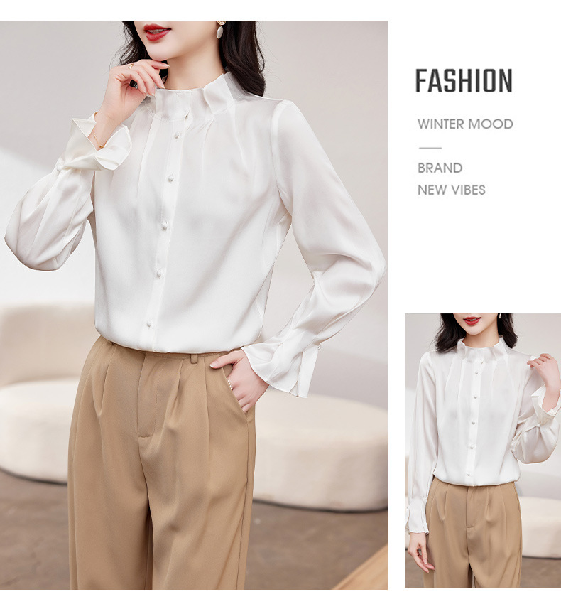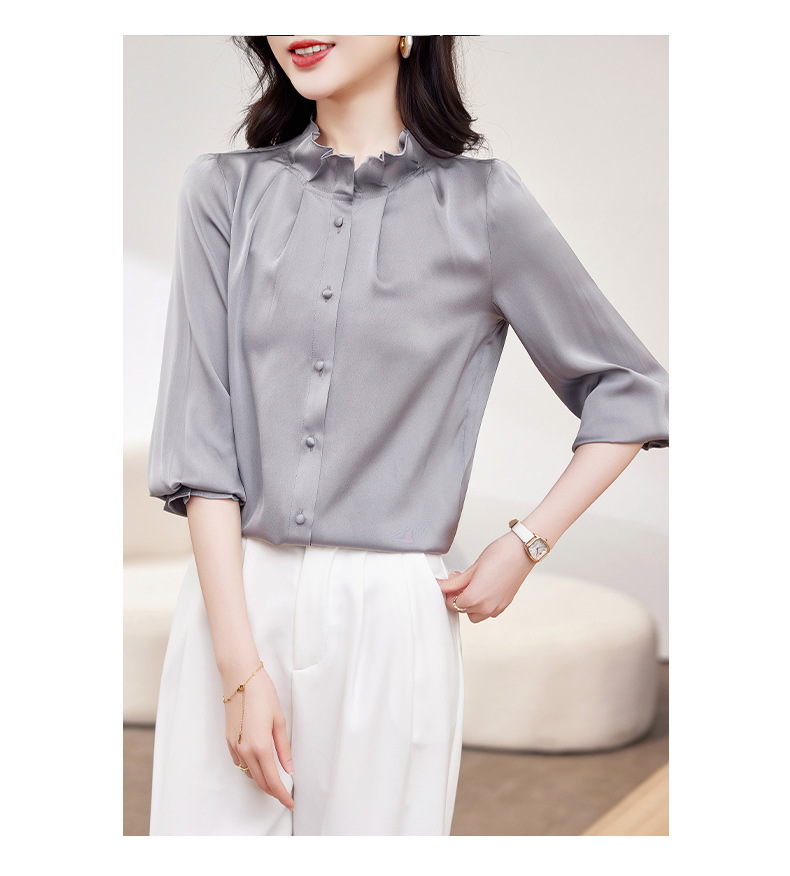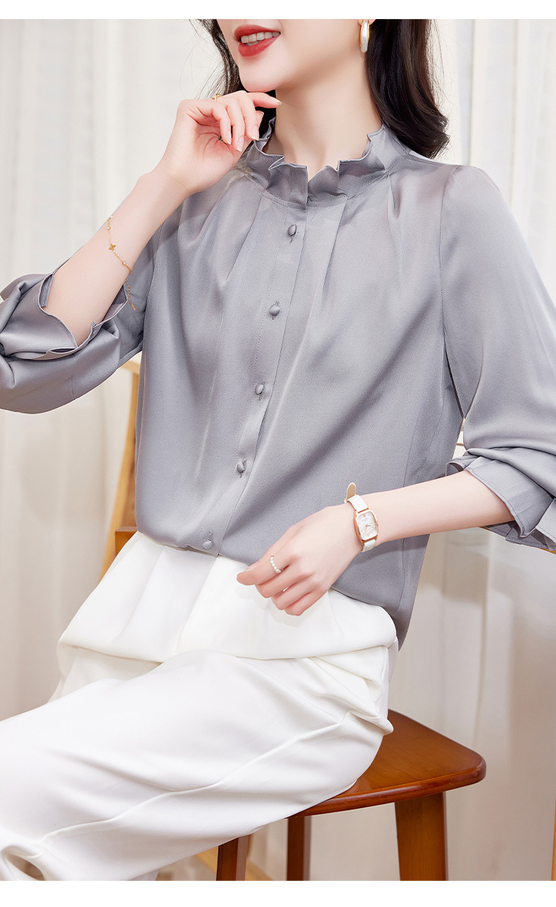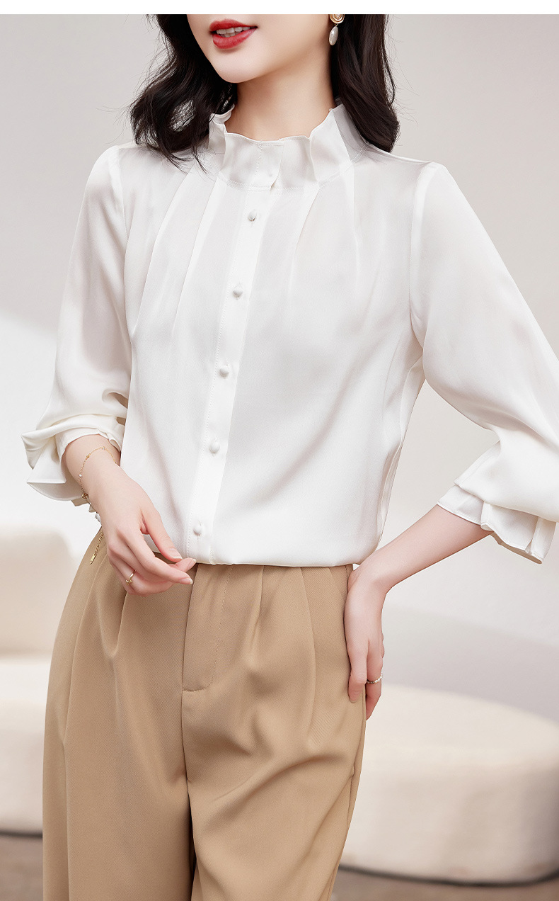 KQ-2026新款春装长袖灯笼袖洋气质红色衬衫女真丝上衣桑蚕丝时尚小衫