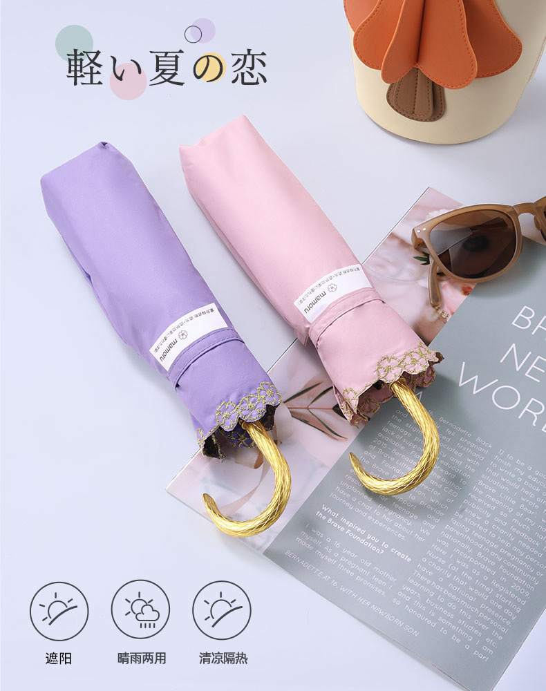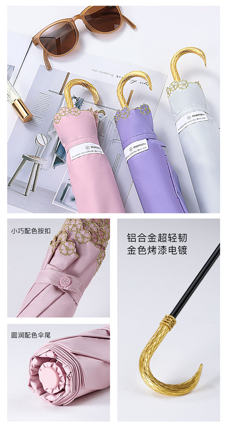 【Mamoru】小弯钩刺绣防晒伞防紫外线遮阳太阳伞晴雨两用