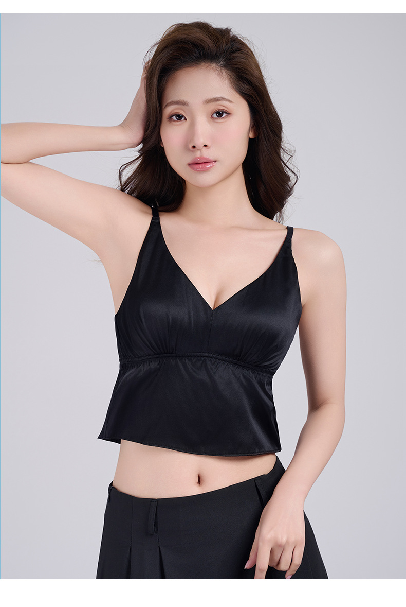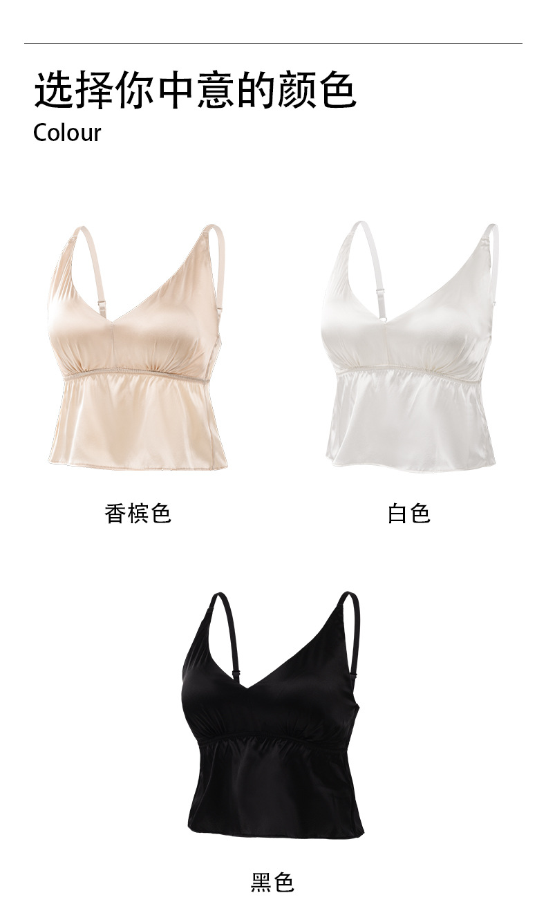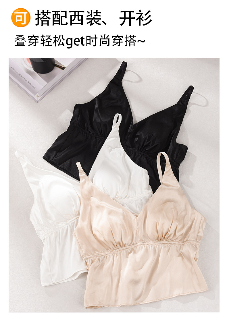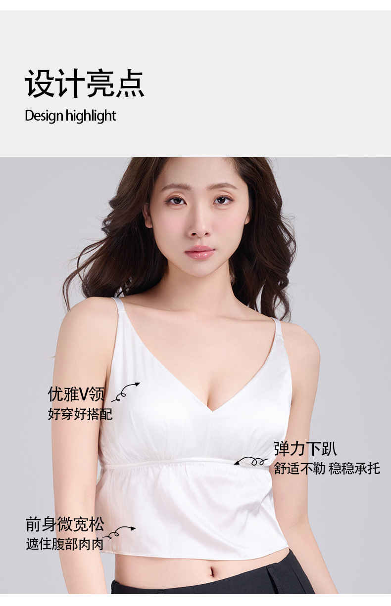 CC-TG02S254弹力缎真丝V领打底外穿吊带桑蚕丝一体式无钢圈美背吊带内衣