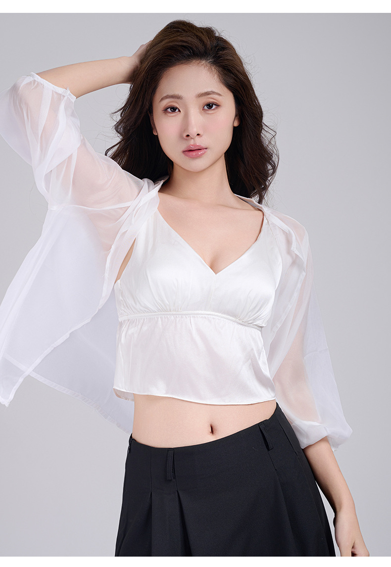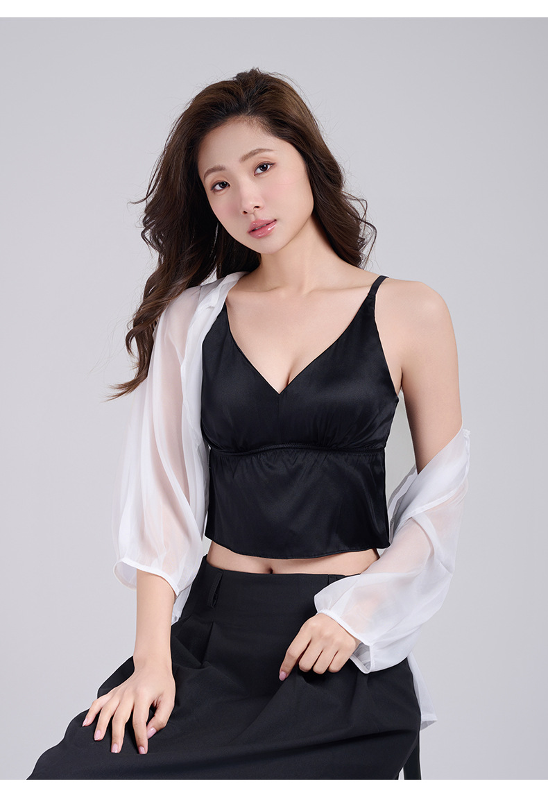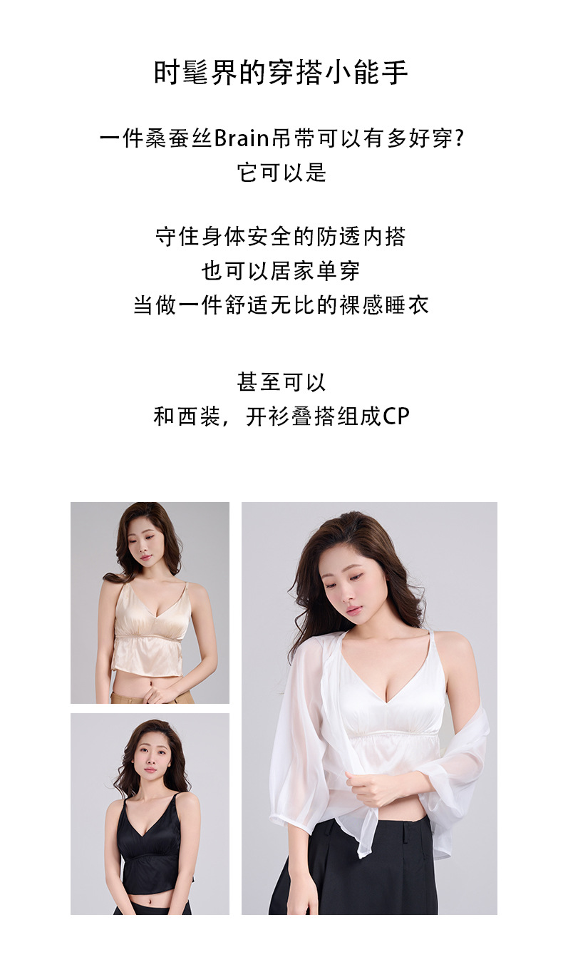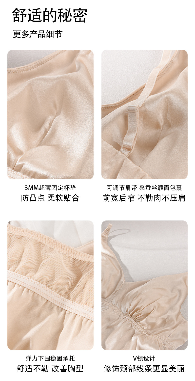 CC-TG02S254弹力缎真丝V领打底外穿吊带桑蚕丝一体式无钢圈美背吊带内衣