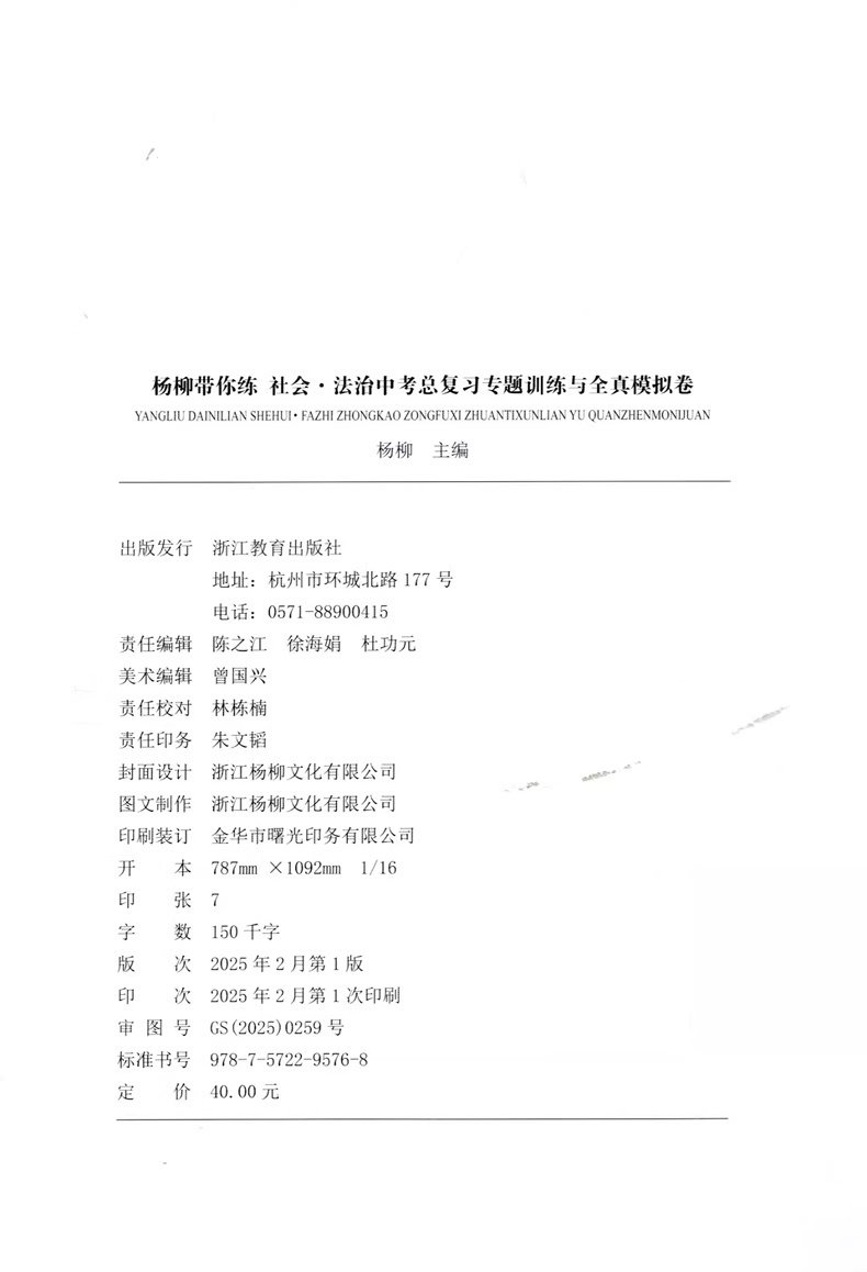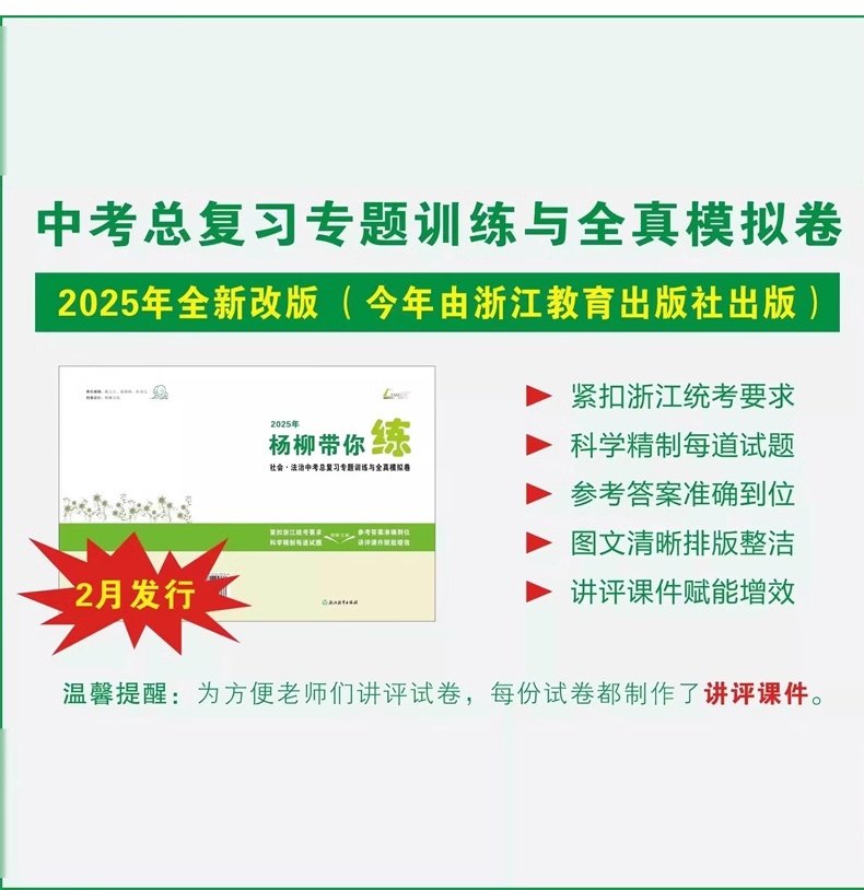 2025杨柳文化杨柳带你练浙江省社会法治中考总复习专题训练与全真模拟卷七八九年级练习精编学习手册