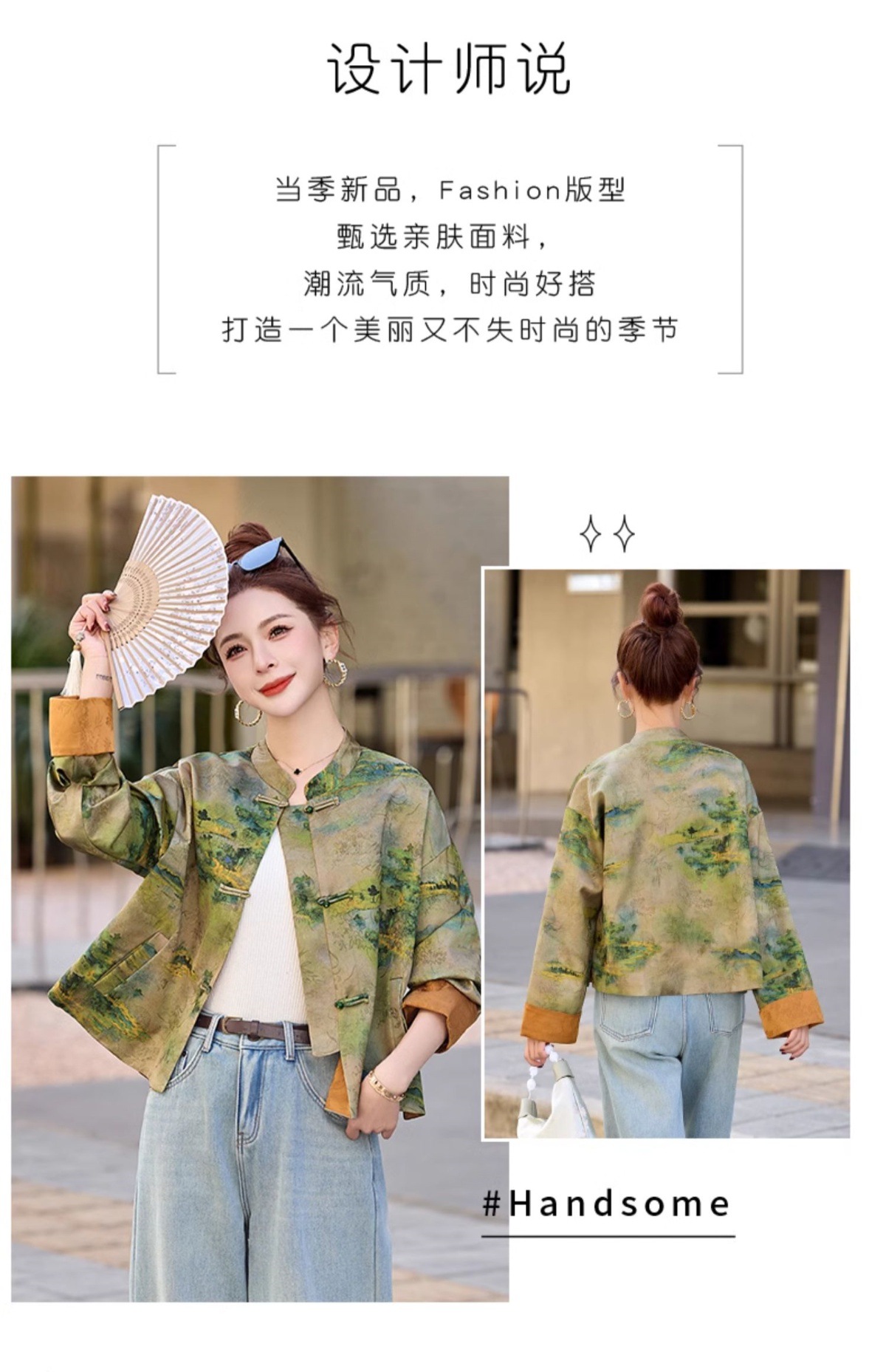新中式国风外套,高级感气质显瘦短款印花唐装上衣HR-BBL2503