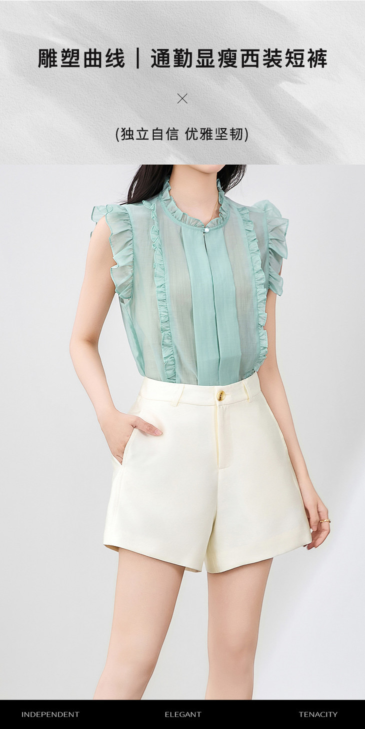 不挑人显瘦裤型遮肉,定纺光感丝毛短裤西装WLZD-2507703