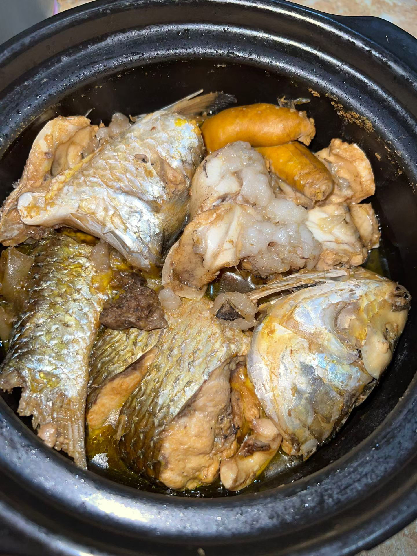 2.锅里热油,下红古鱼煎香一面;