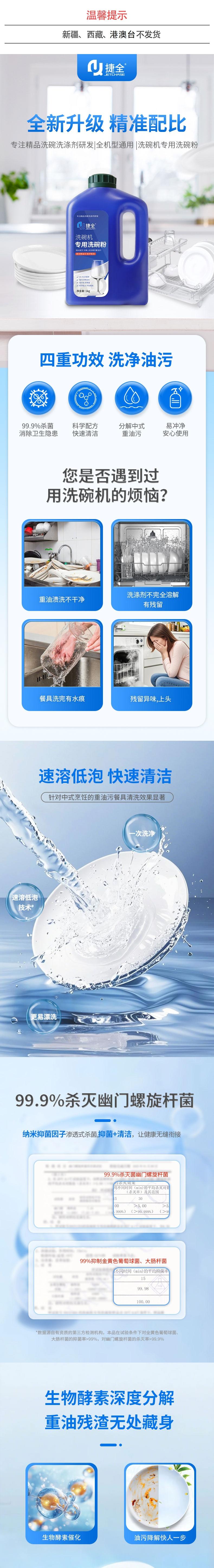 捷全 洗碗机专用洗碗粉3瓶 BJQXWXWF003