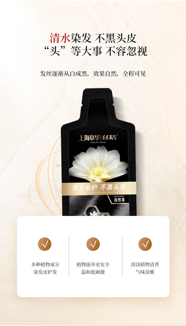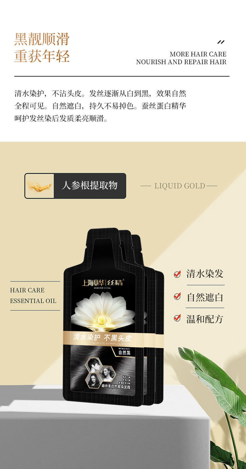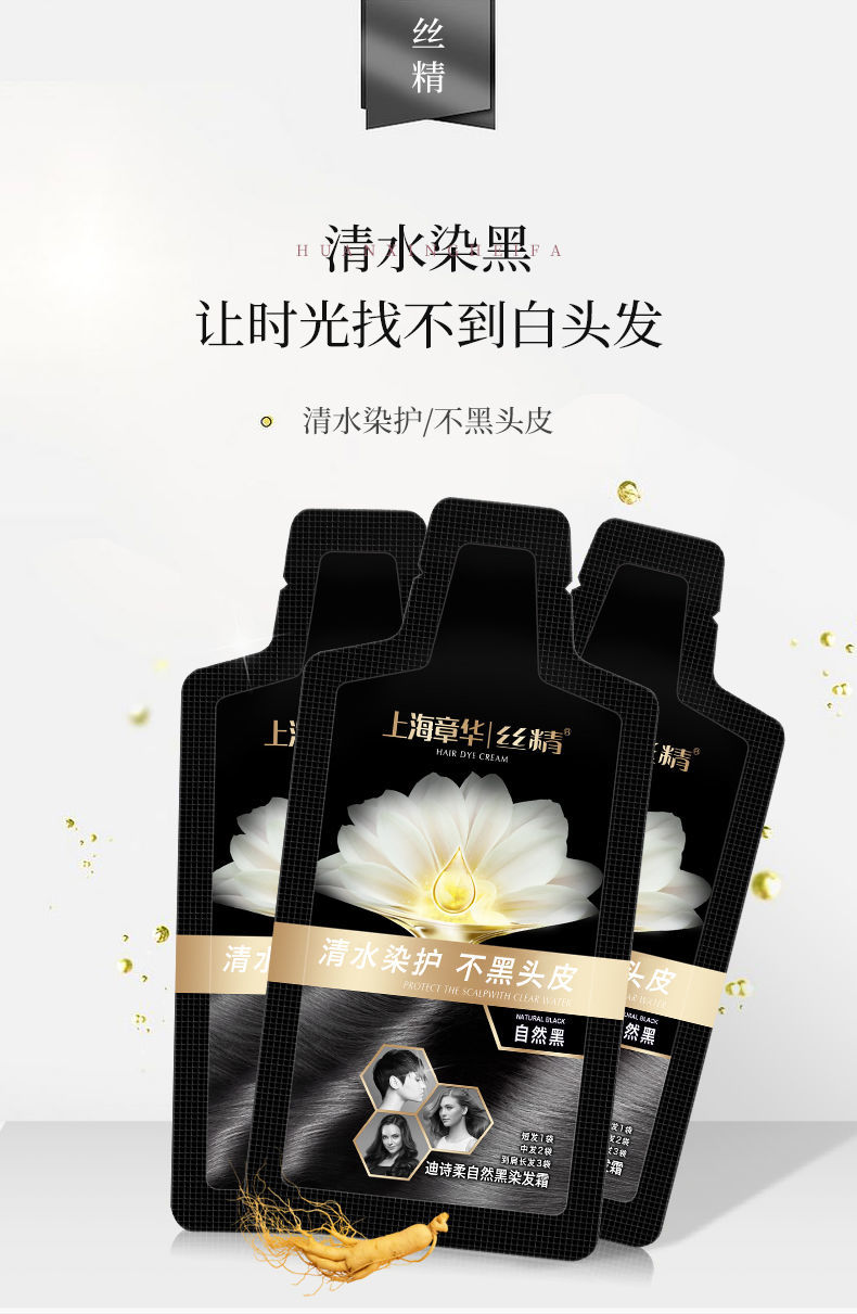 【 生态自然黑】上海章华(SAVOL)迪诗柔自然黑染发霜(30ml*12包)短发1包中发2包长发3包