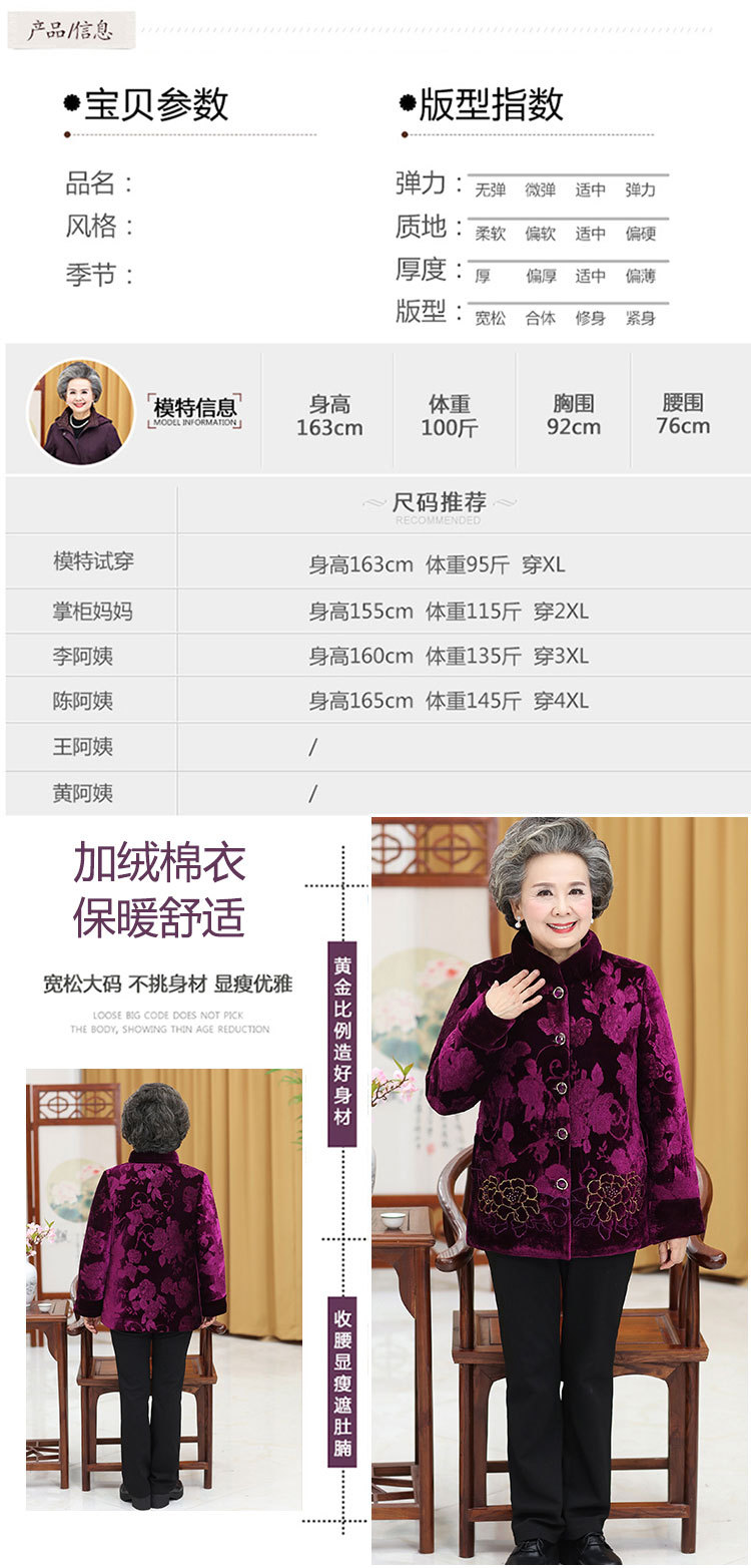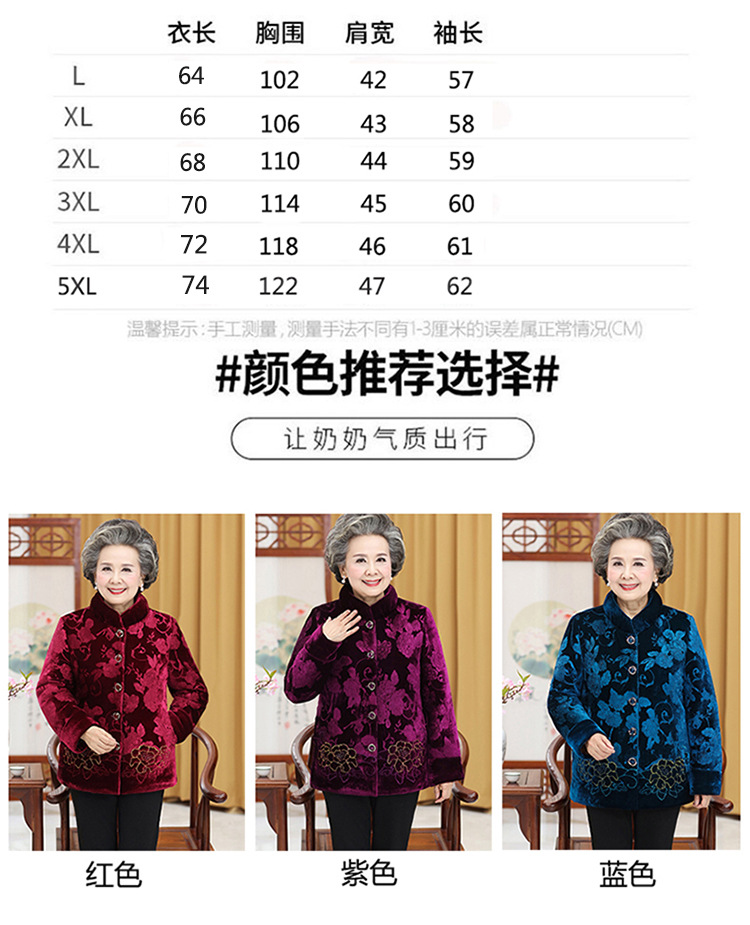 老人加厚60-70-80岁奶奶装,外套金丝绒棉衣TYWF-911