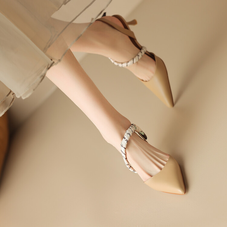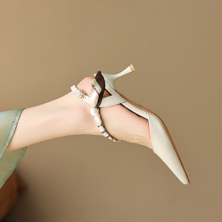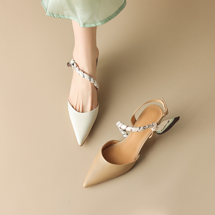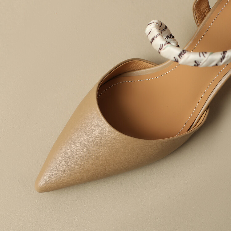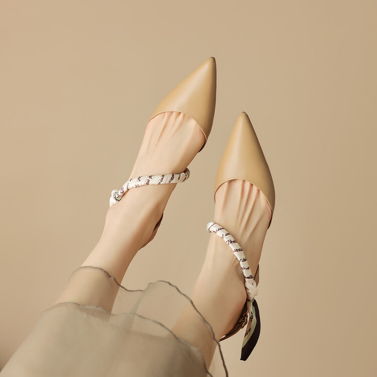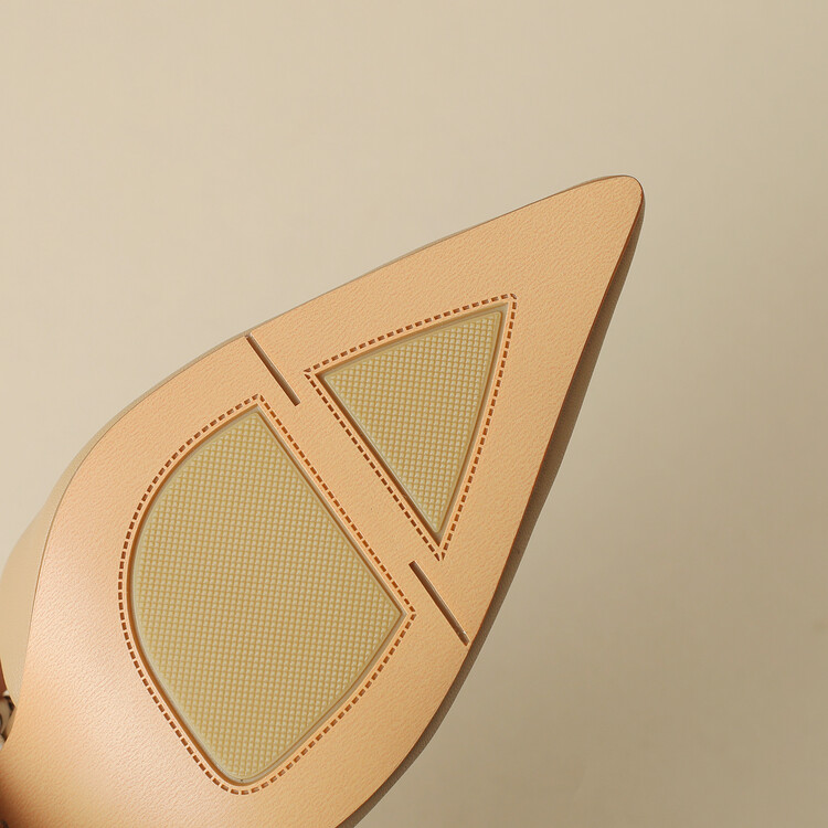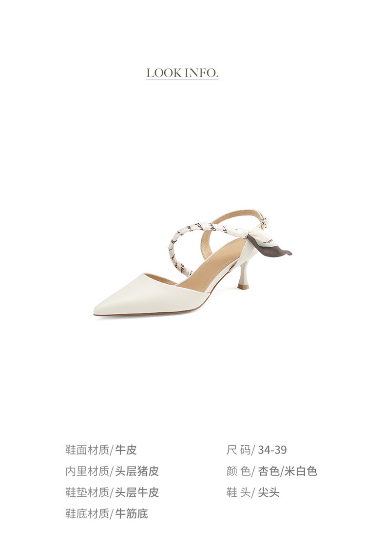 帮面材质:牛皮鞋垫:头层牛皮垫内里材质:头层猪里皮鞋底材质:牛筋底颜色:杏色 米白色跟高:6 CM