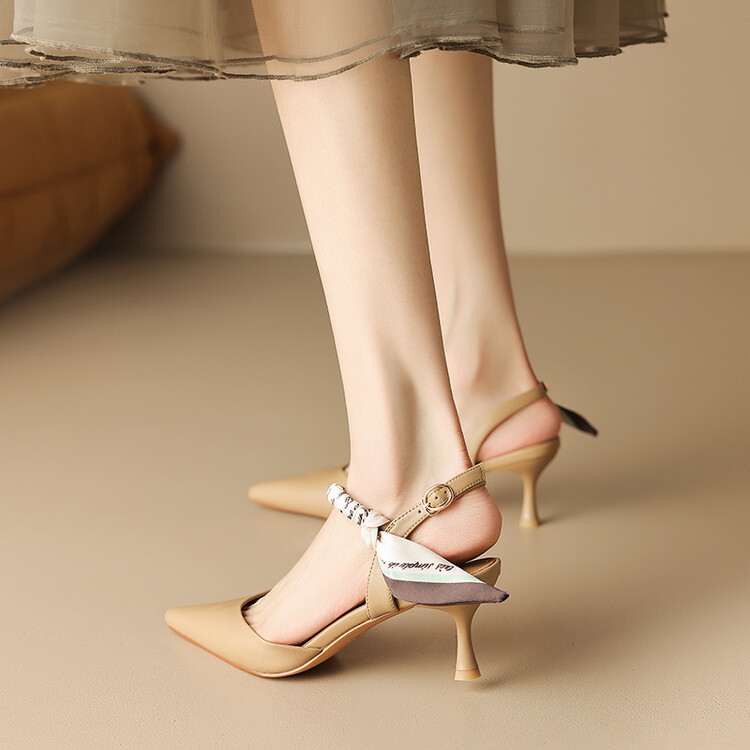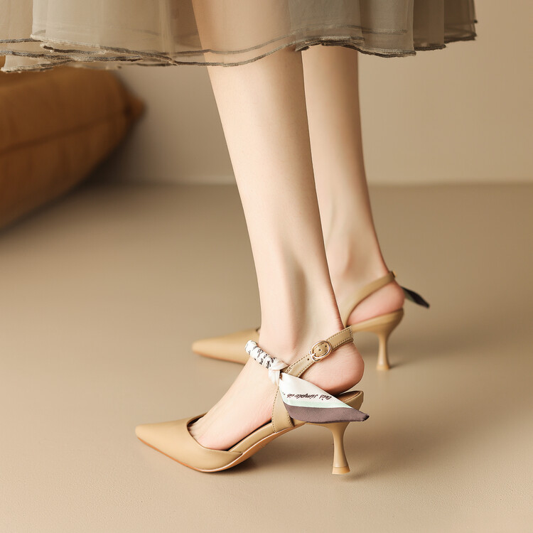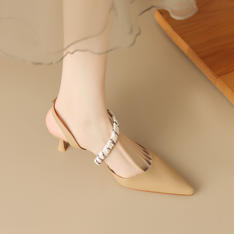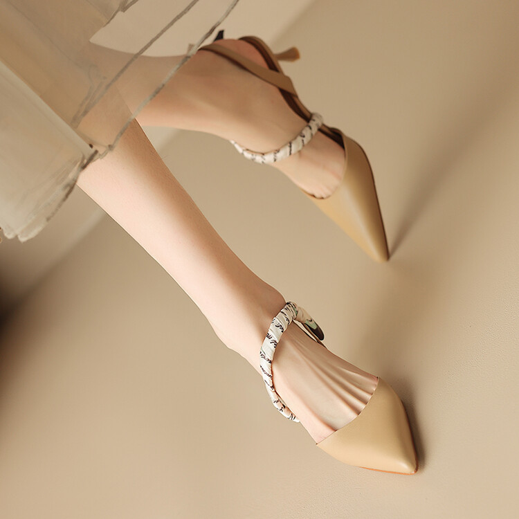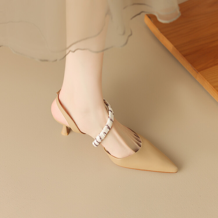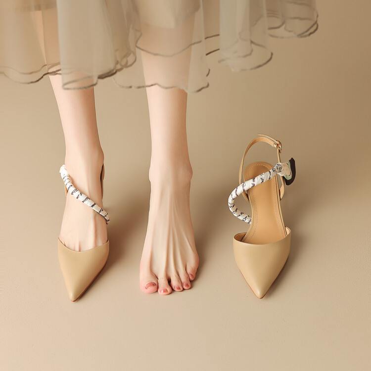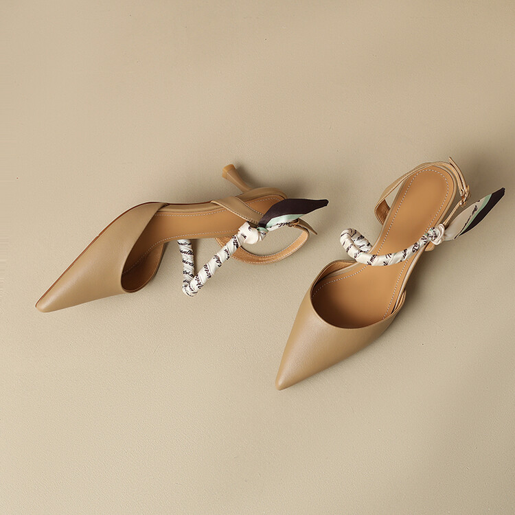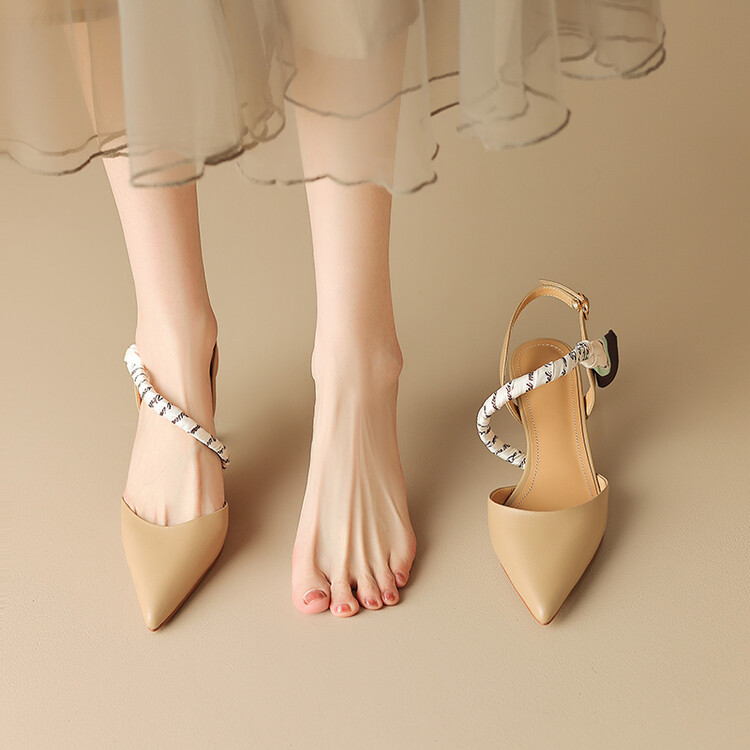 帮面材质:牛皮鞋垫:头层牛皮垫内里材质:头层猪里皮鞋底材质:牛筋底颜色:杏色 米白色跟高:6 CM