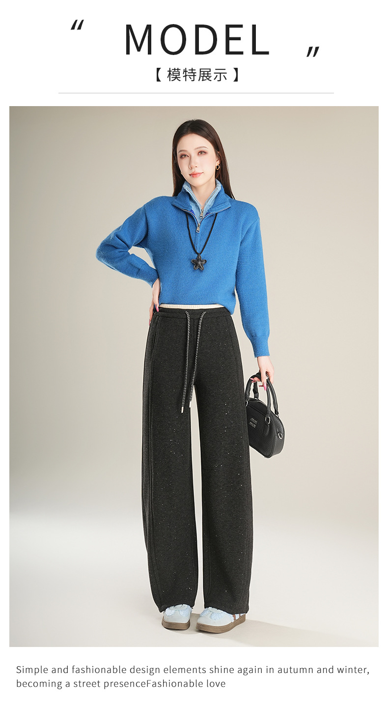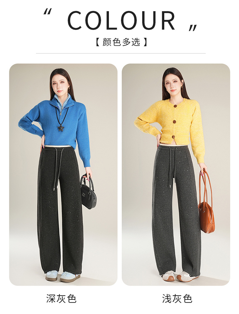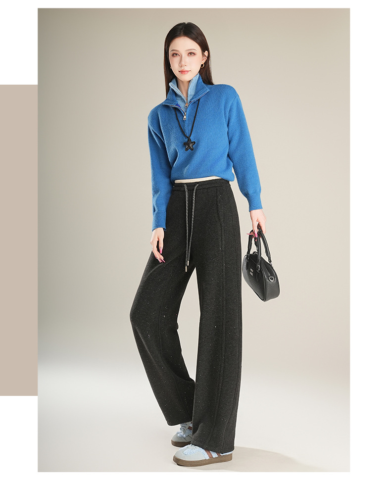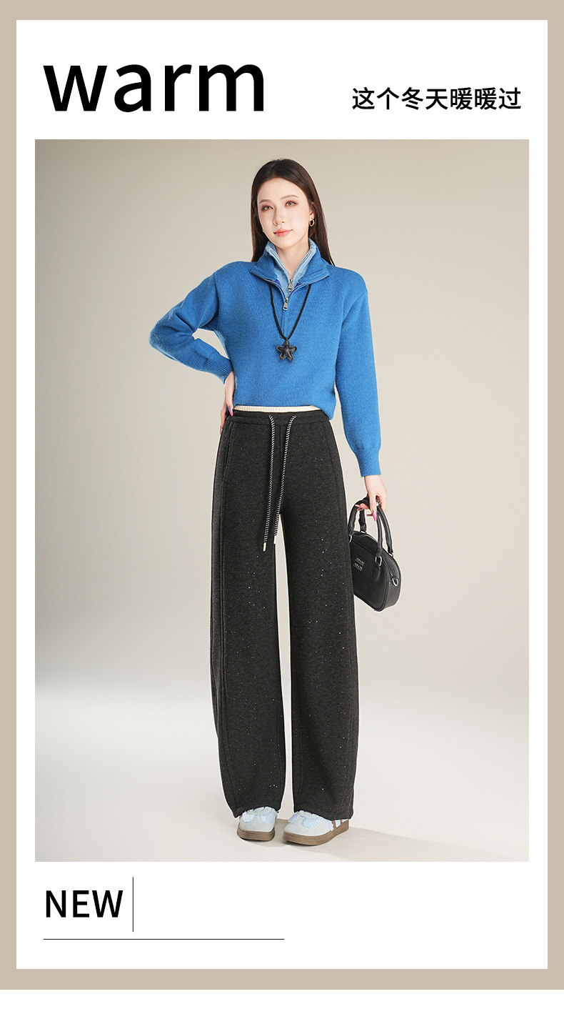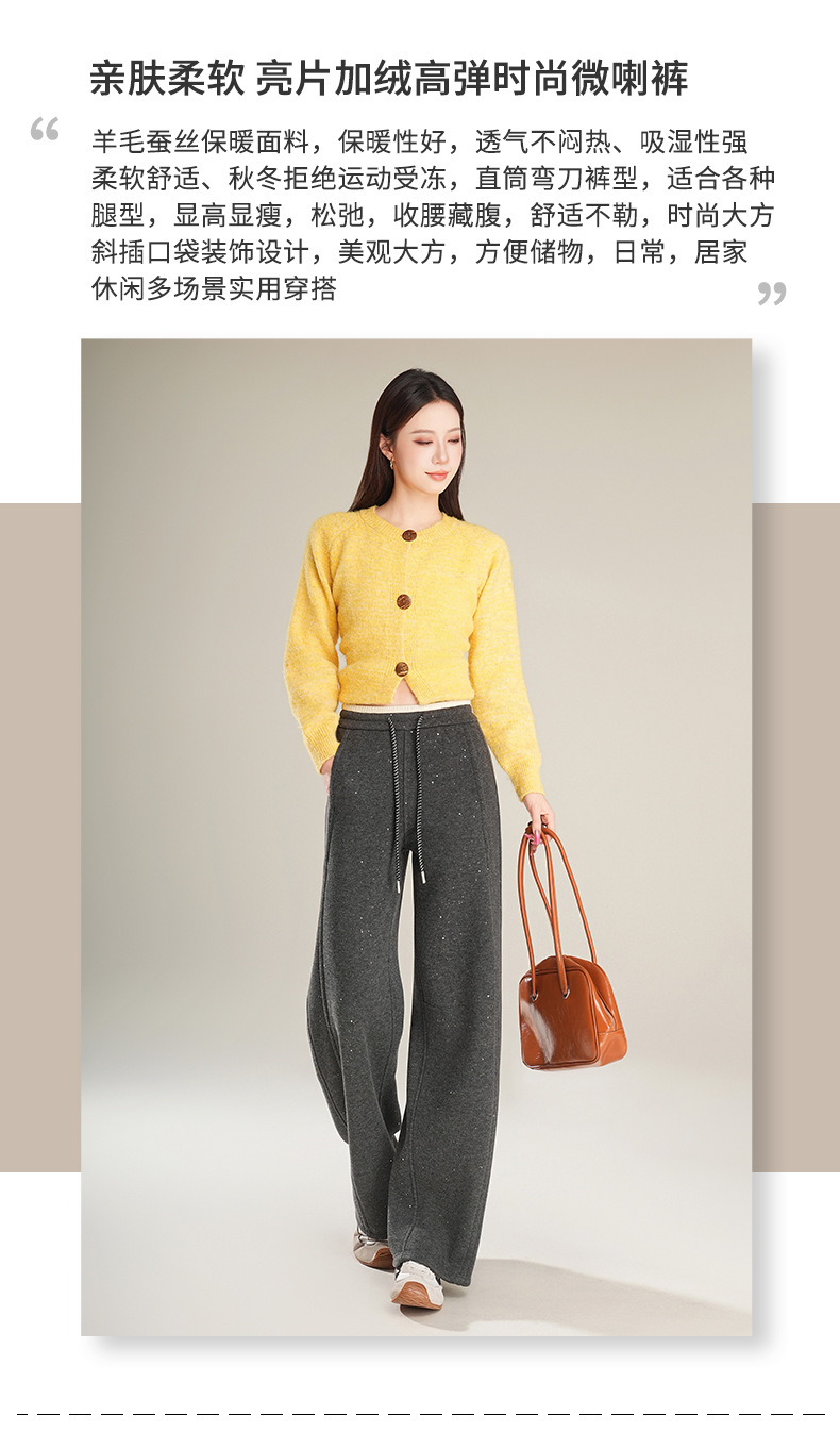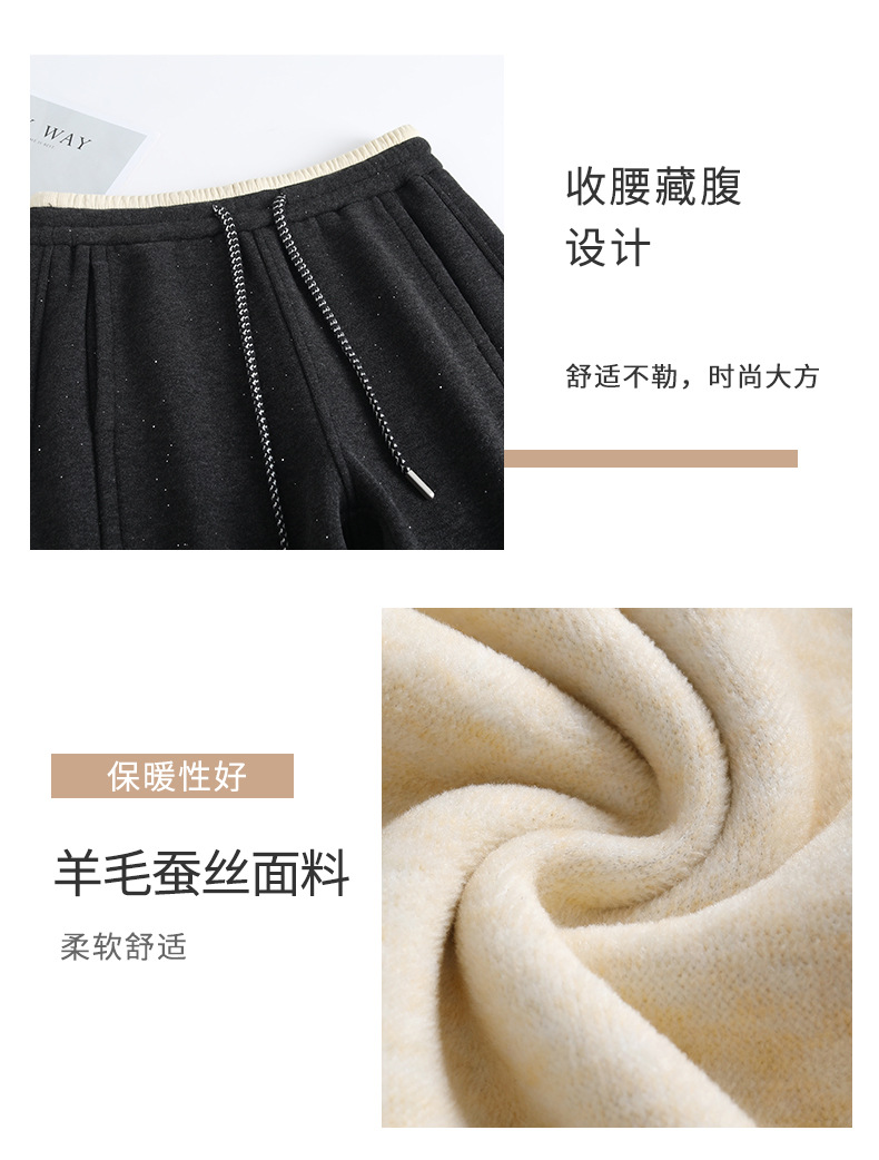 百媚生 【加绒加厚星星裤】羊毛蚕丝休闲裤女冬季垂感抽绳直筒裤Y8877