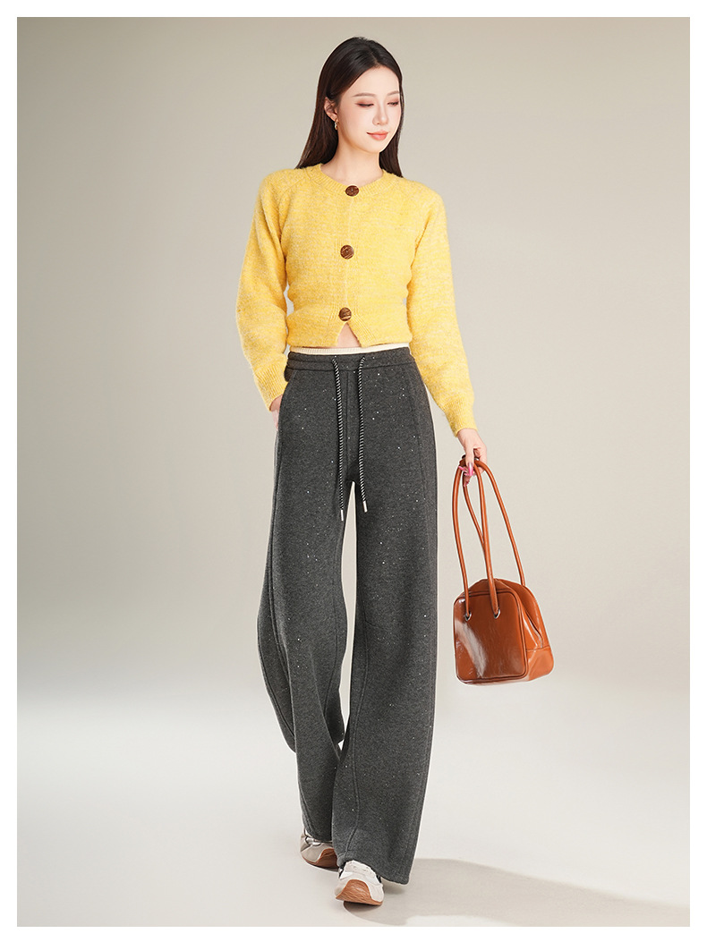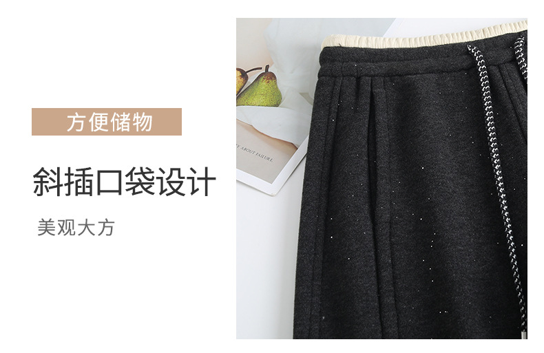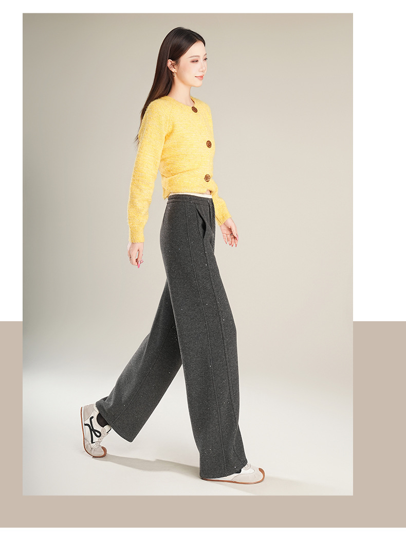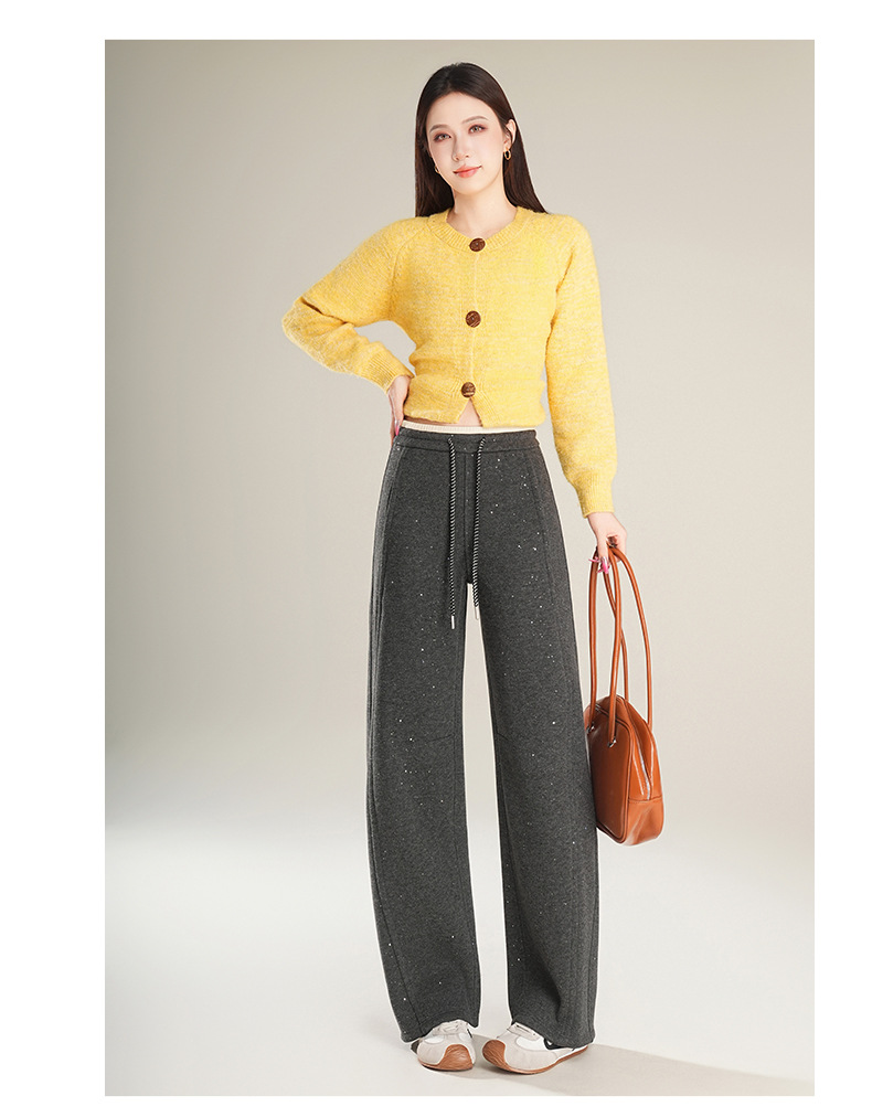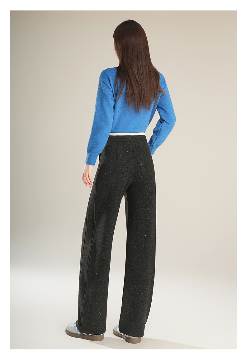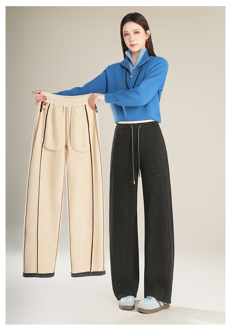 百媚生 【加绒加厚星星裤】羊毛蚕丝休闲裤女冬季垂感抽绳直筒裤Y8877