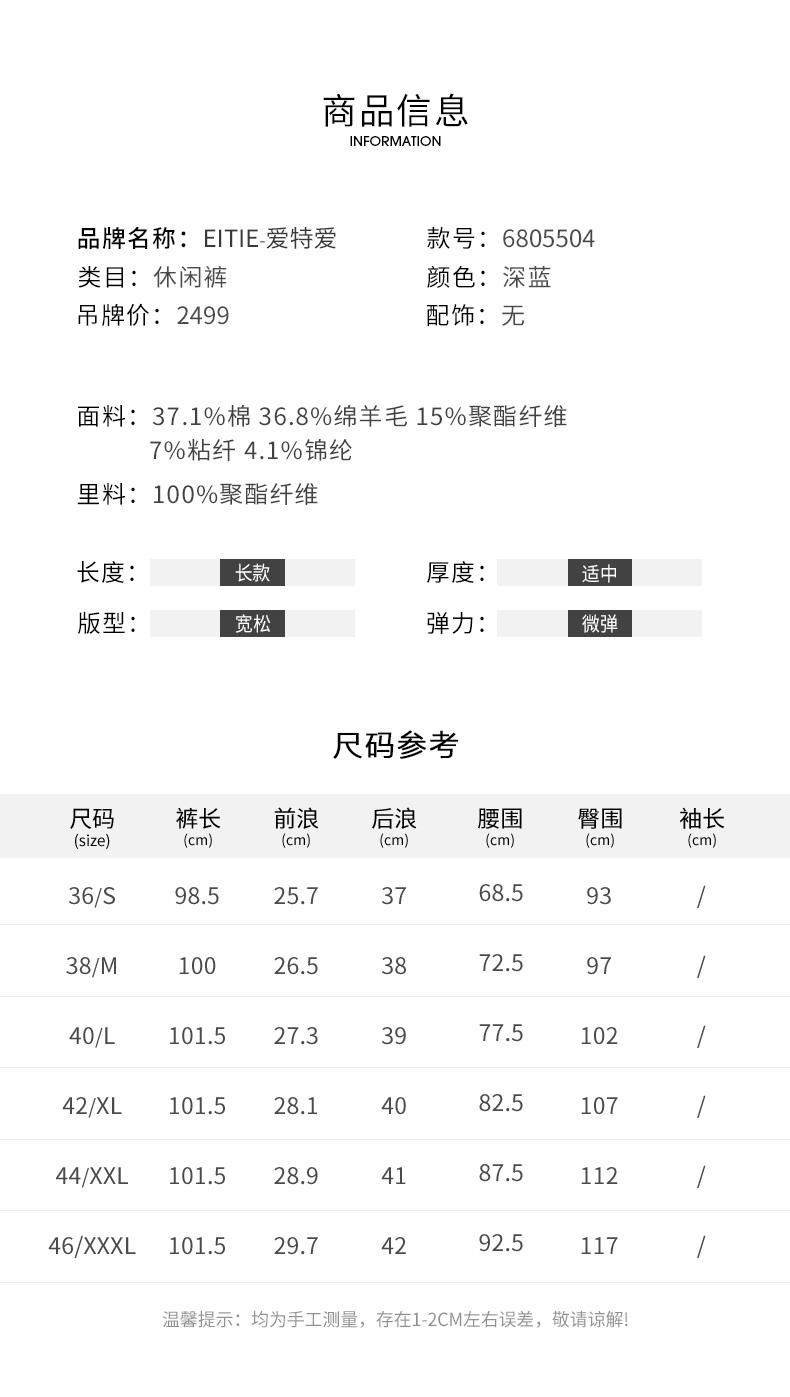 EITIE爱特爱冬季新款通勤职业干练时尚显瘦西装裤直筒长裤女裤子6805504