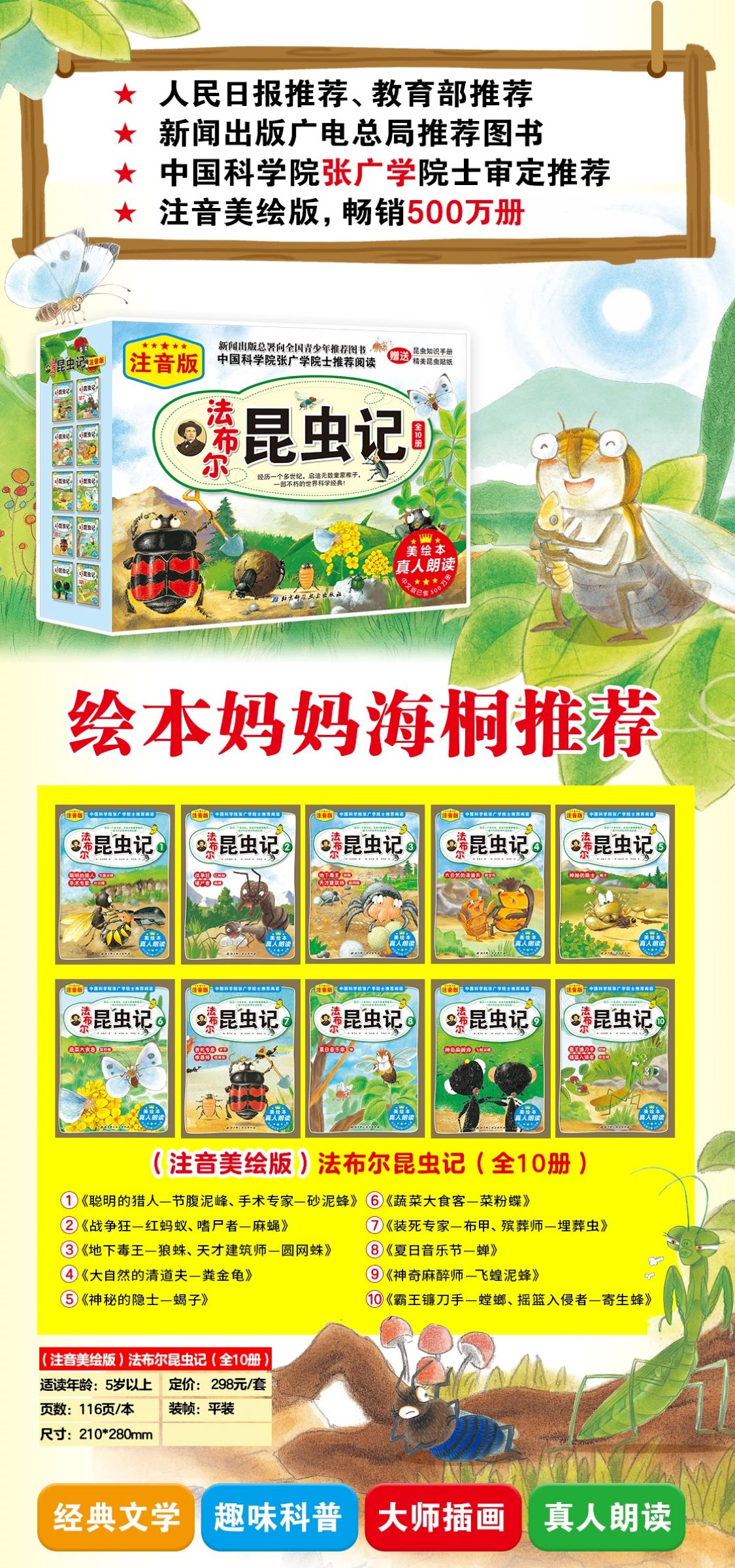 (注音美绘本)法布尔昆虫记套装(全10册,真人朗读版,中国科学院张广学院士推荐阅读