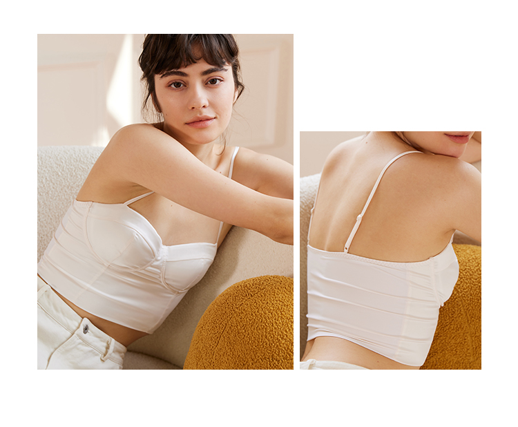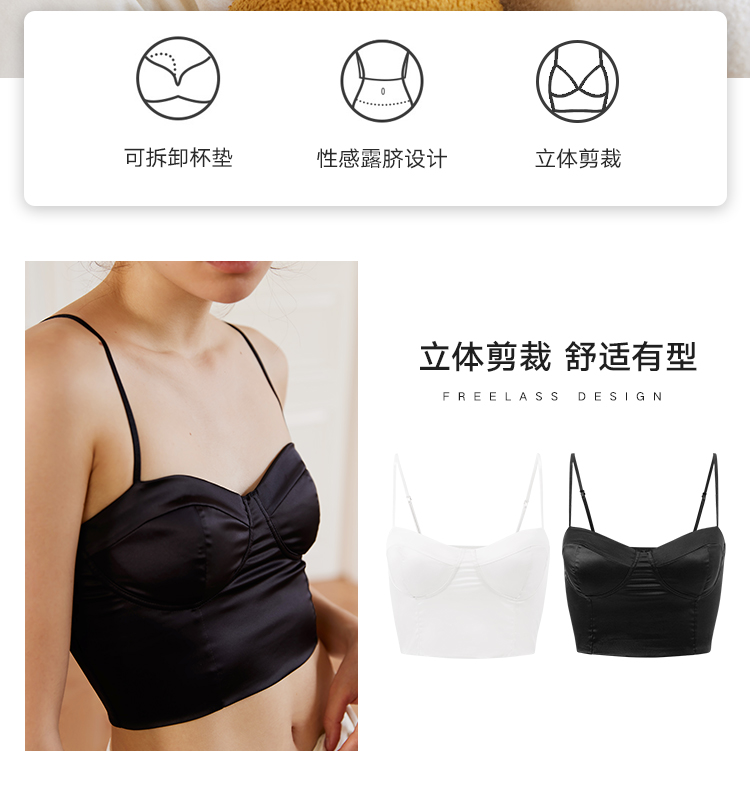 弗利少女内衣女外穿夏季薄款无钢圈白色背心式文胸细吊带一体胸衣