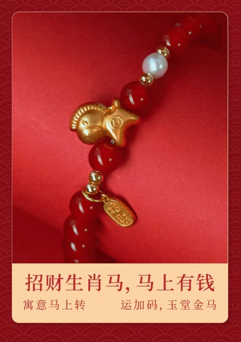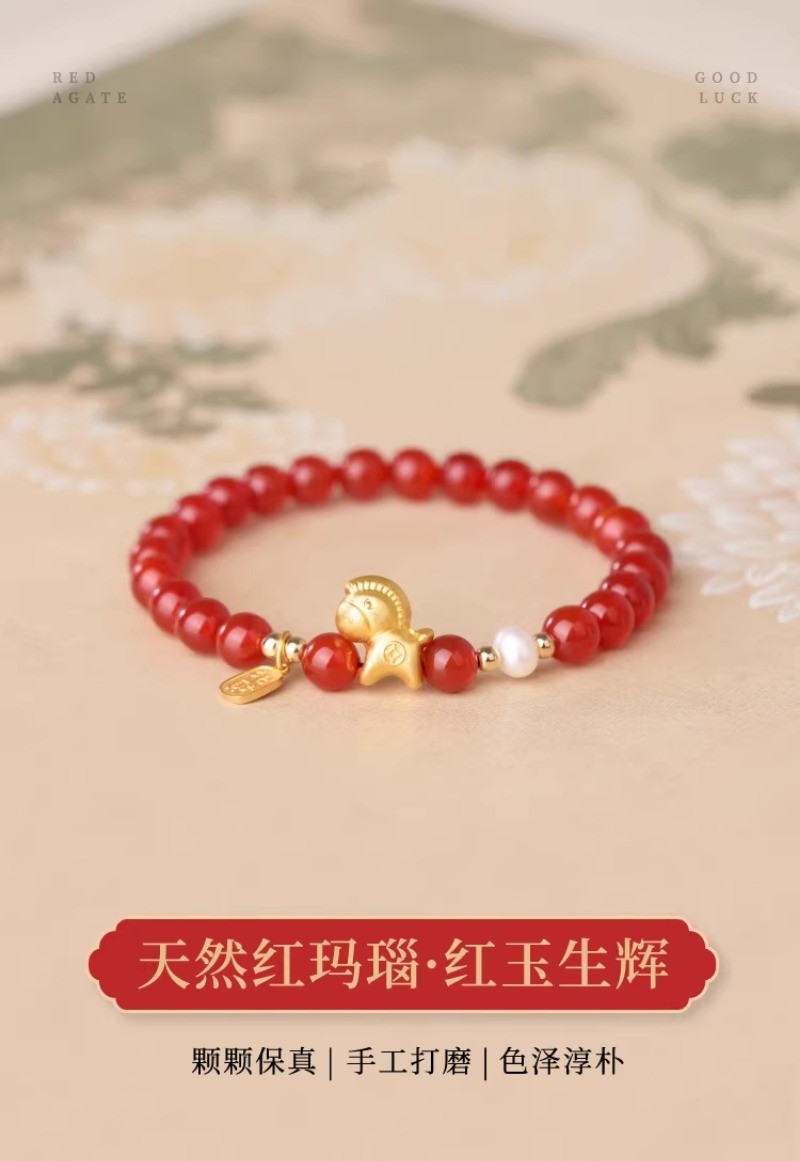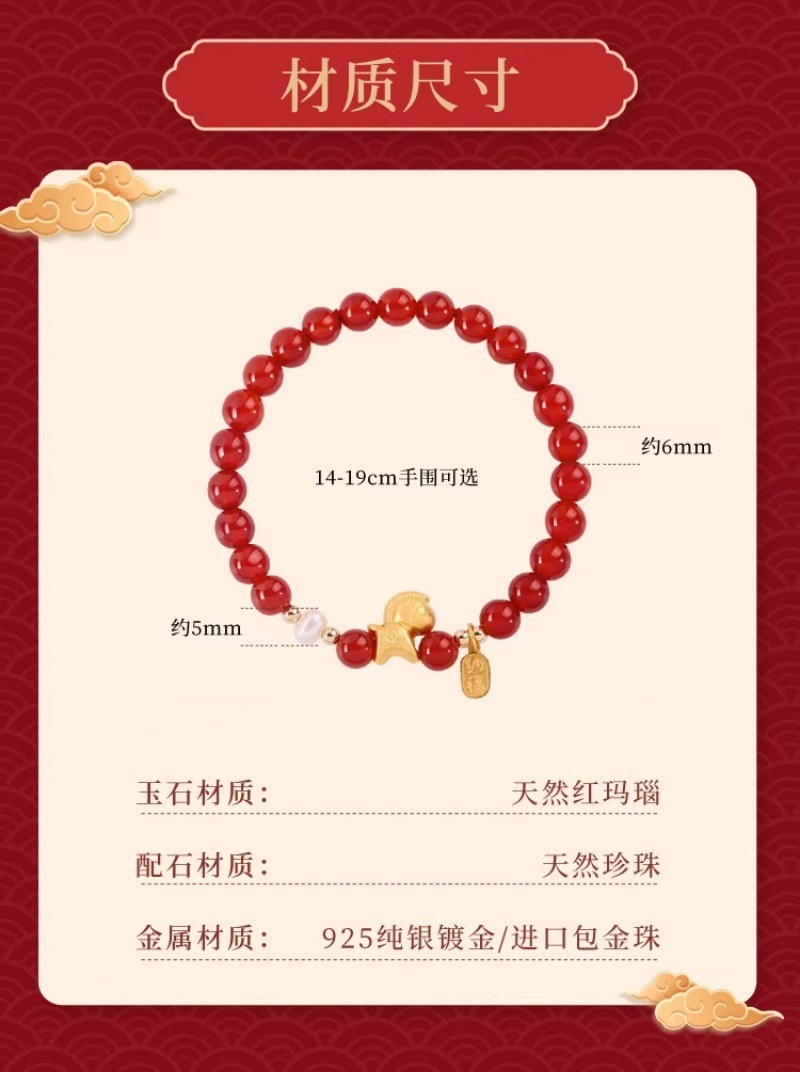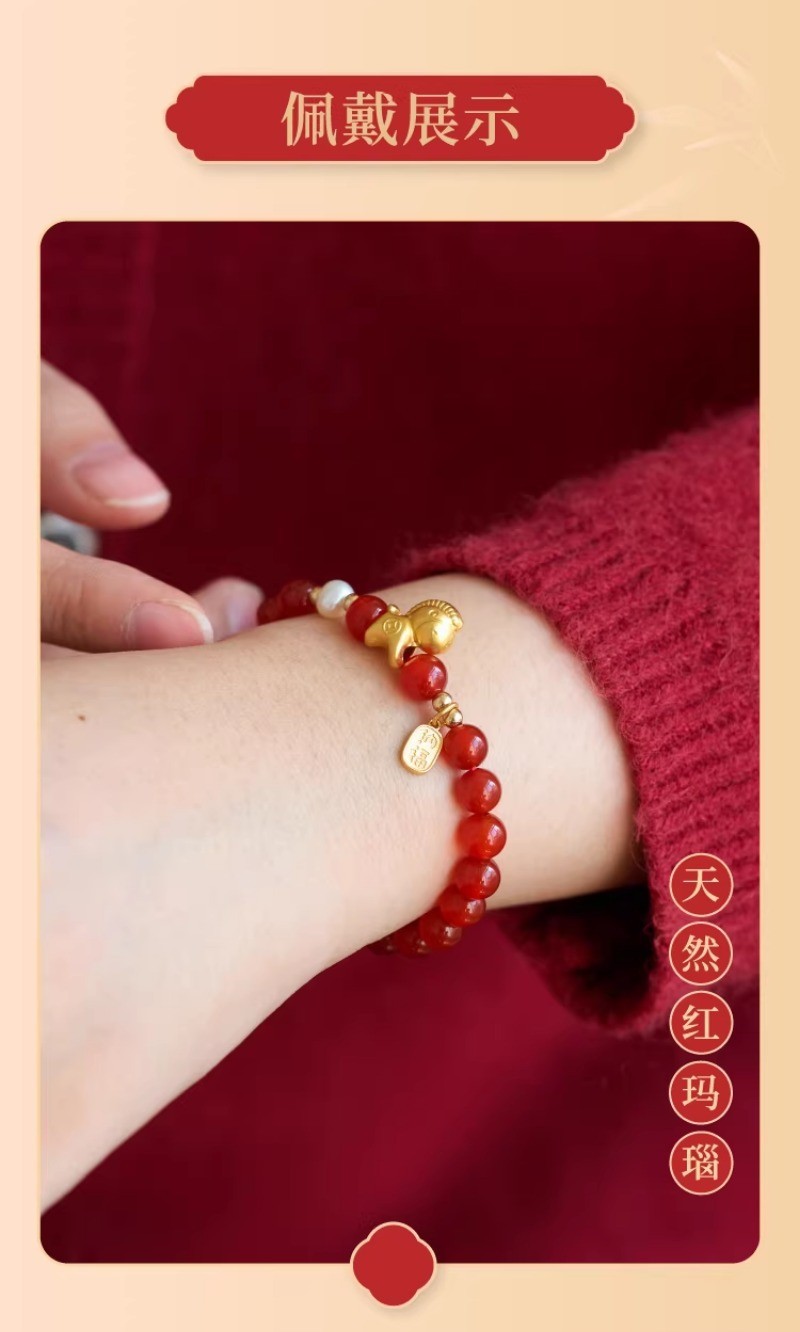 【红玛瑙纯银小马手链】赤玉红颜 福运延绵,招财生肖马 马上有钱,一抹吉祥喜庆中国红 红云本命年