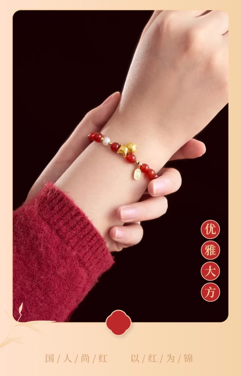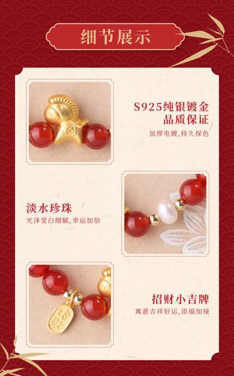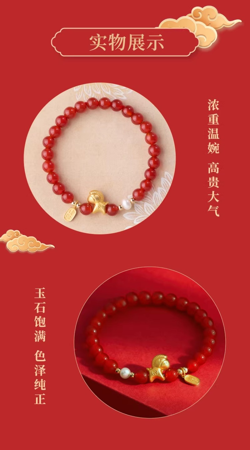【红玛瑙纯银小马手链】赤玉红颜 福运延绵,招财生肖马 马上有钱,一抹吉祥喜庆中国红 红云本命年