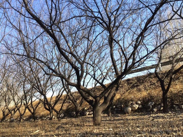 当地劳动力大都外出谋生,种了十几年的杏树缺乏管理,很多都被抛荒或者锄掉了,换成种其他经济农作物,少部分在山沟沟或者门前屋后的杏树被保留了下来。为数不多的杏树,光秃秃地矗立在冬季,成为一道美丽的风景线。