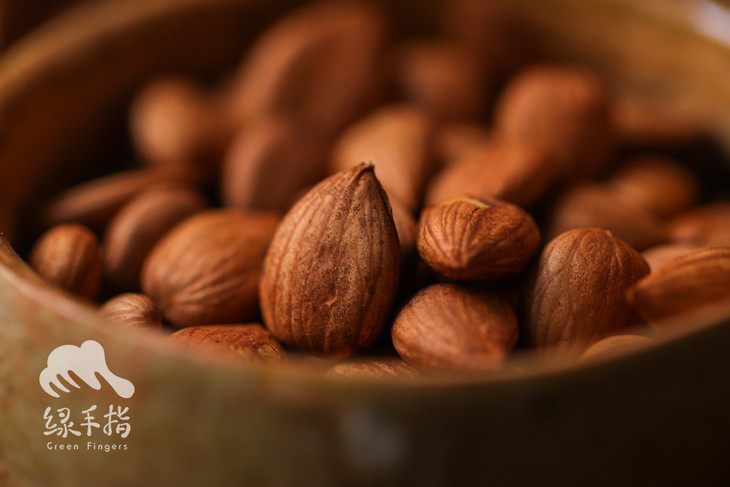饱满的杏仁来之不易。夏季收获杏子后,去除果肉,清洗晒干,再手工一个个砸开甜杏核。想要完整地取出杏仁还是需要一些经验和技巧的。