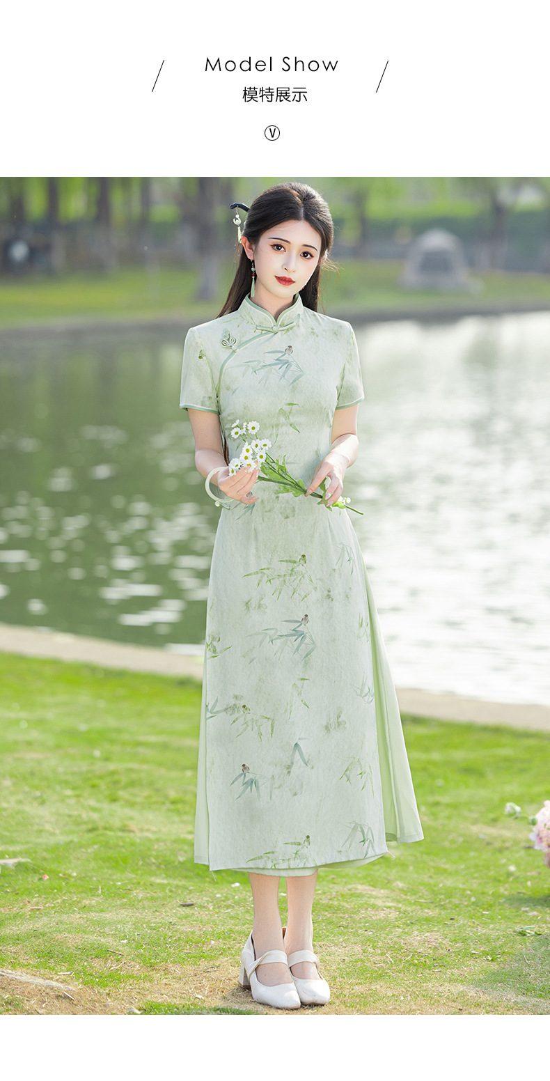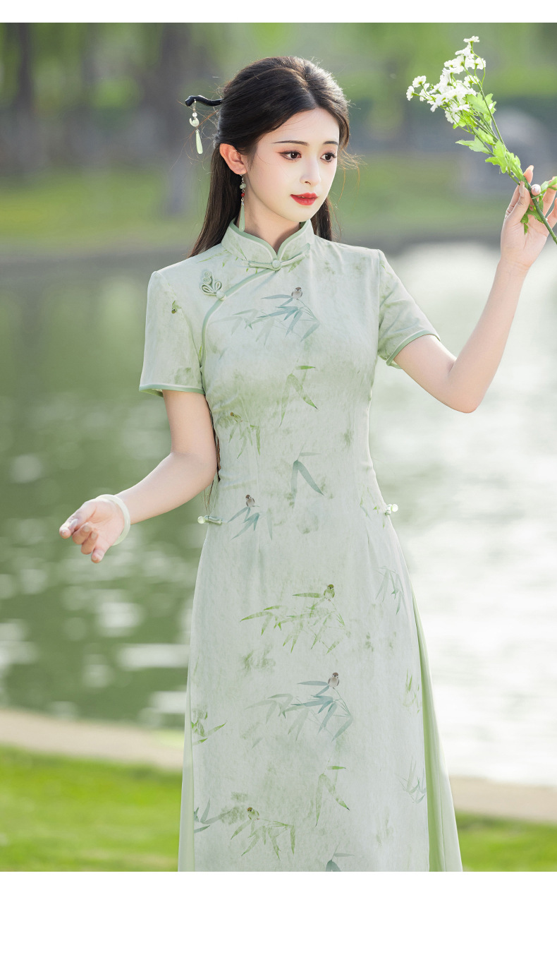 LSB3867绿色国风女装连衣裙2025新款复古优雅气质改良年轻款女新中式旗袍 商品图3
