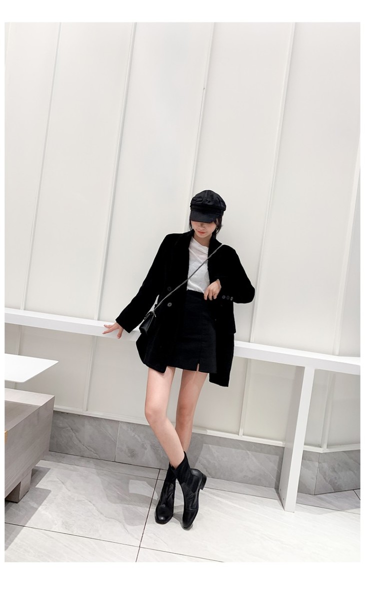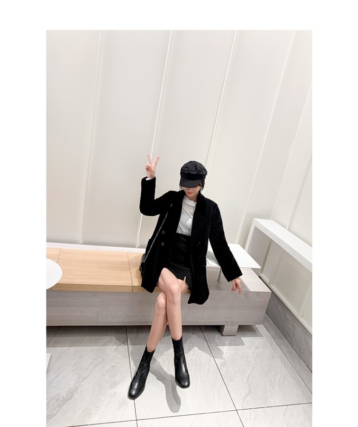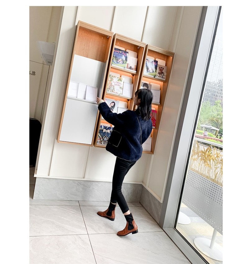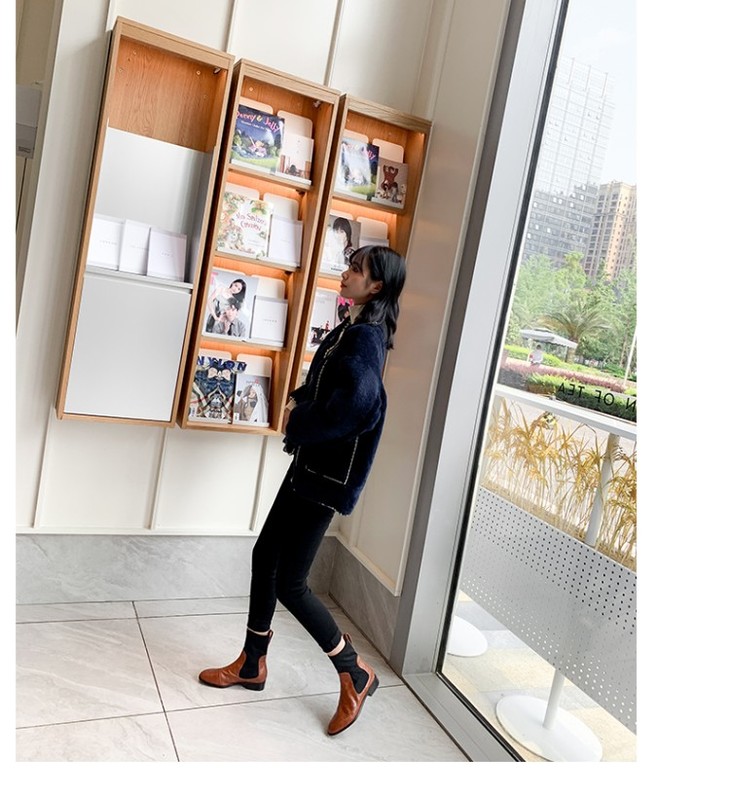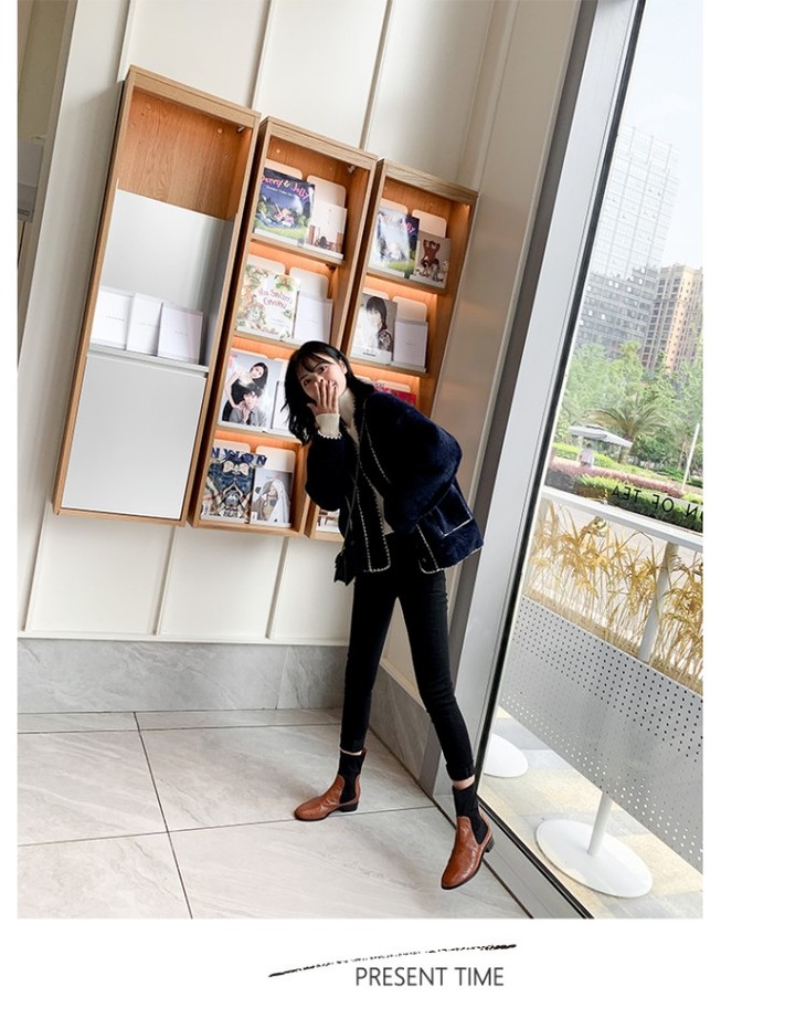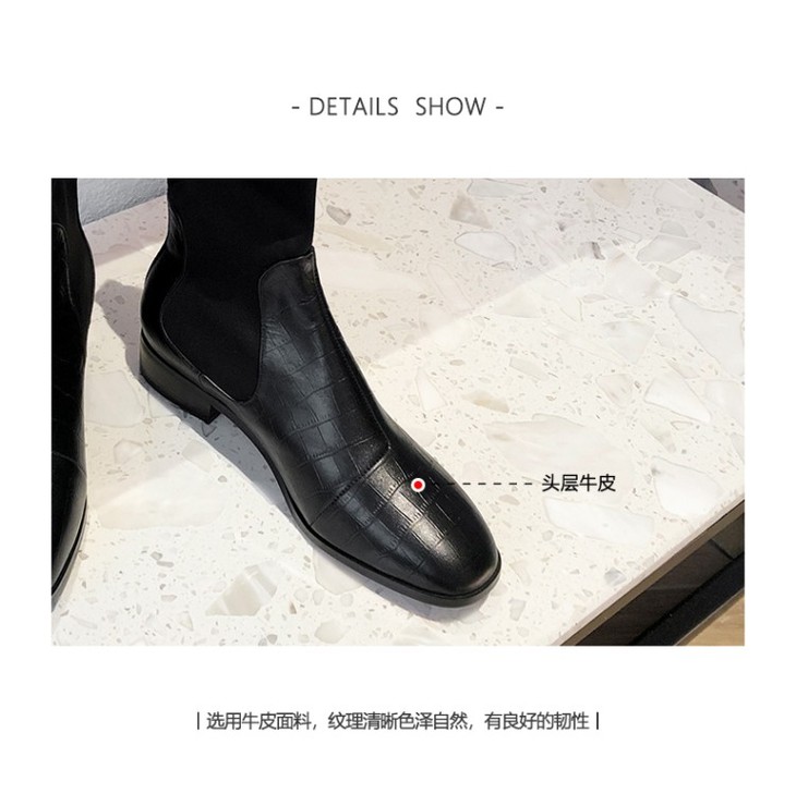 QQJ-JW-709 秋季新款圆头方根纯色真皮弹力靴松紧带复古时尚低跟短筒靴
