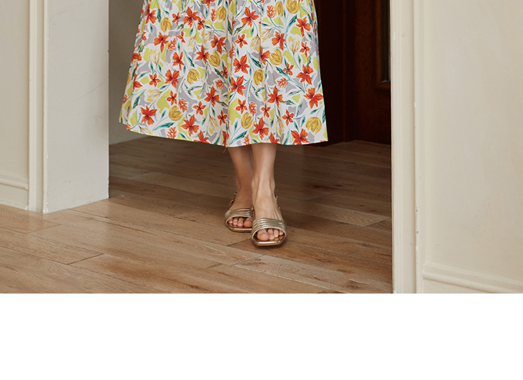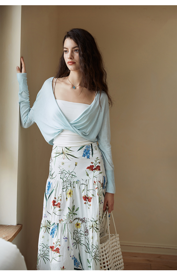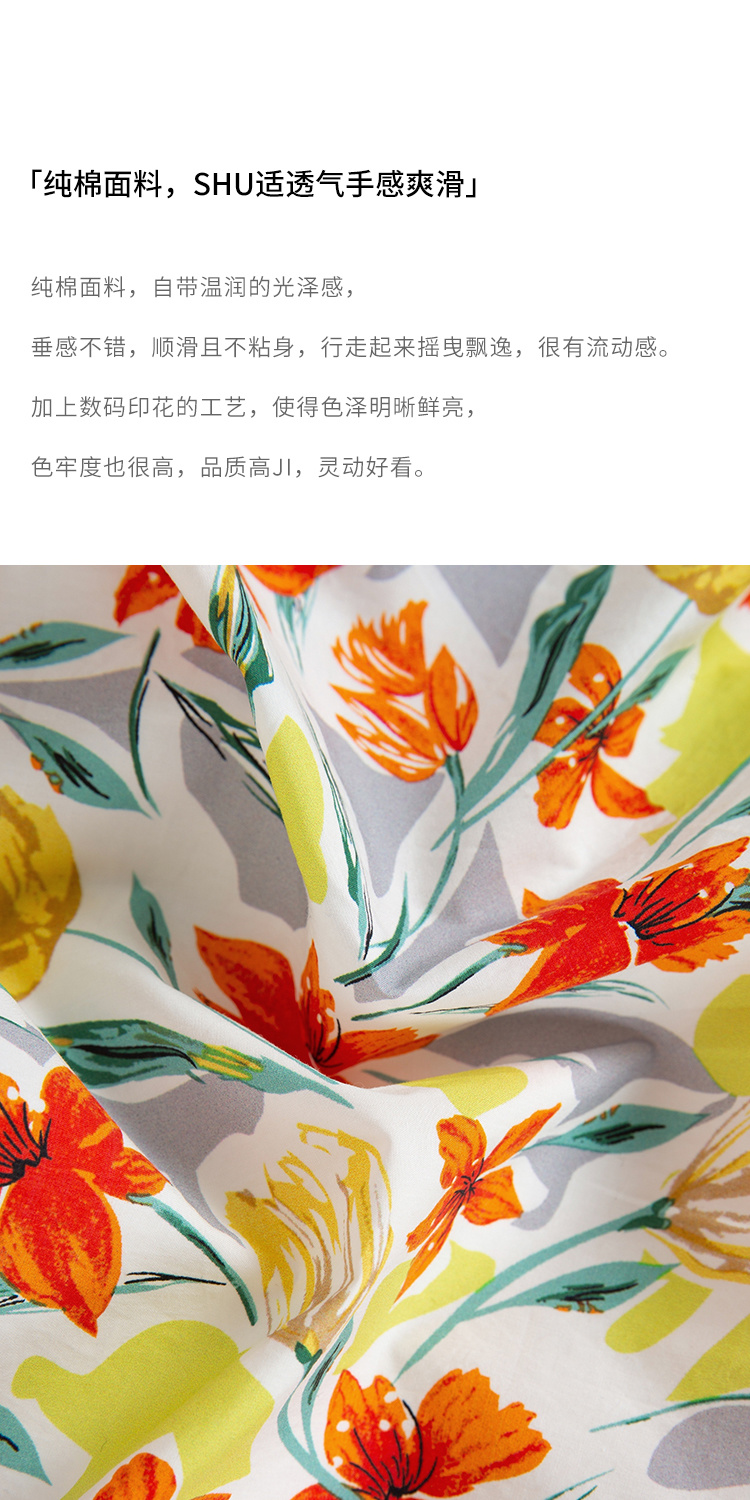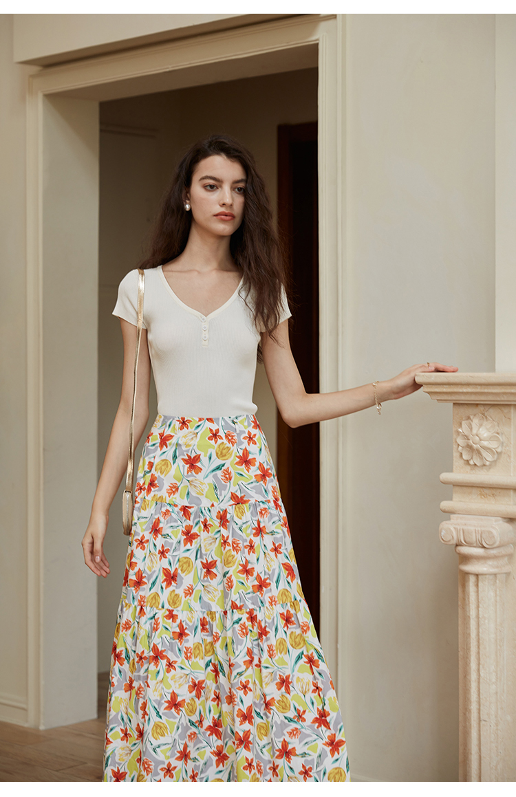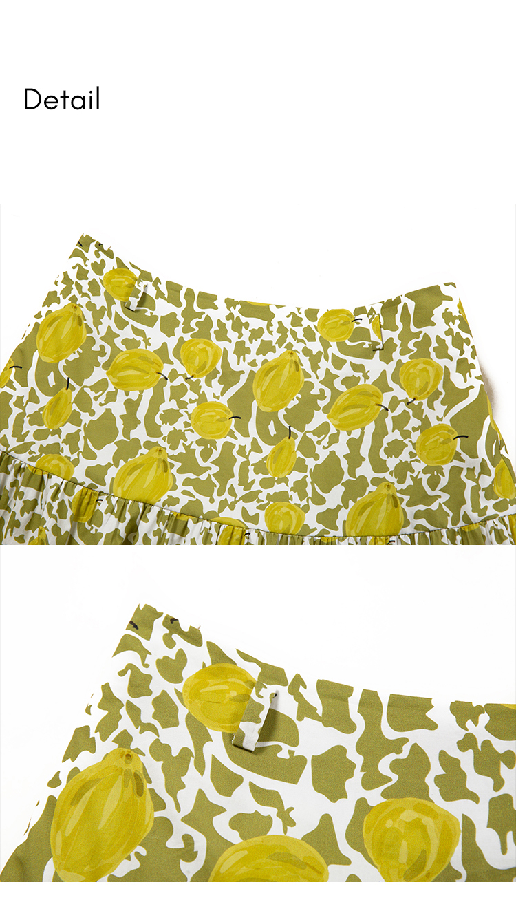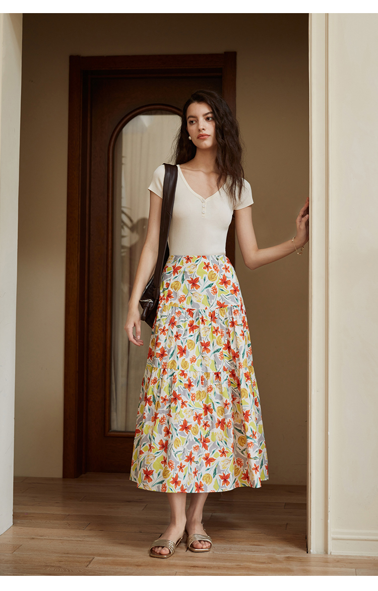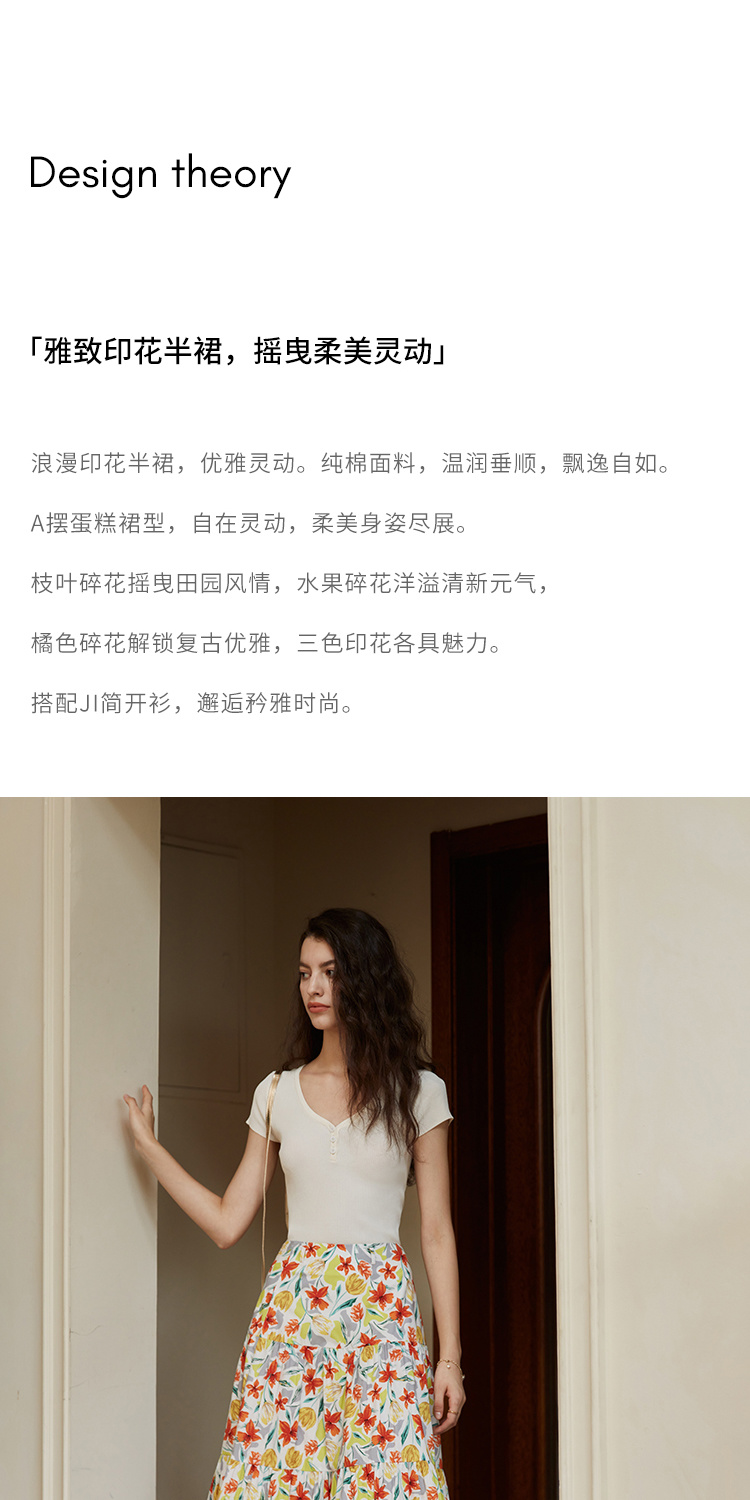 HeyDress法式印花半身裙女春夏高腰宽松压褶A字裙优雅气质伞摆裙